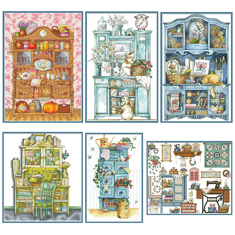 Набор для вышивки крестиком Серии шкафа, Набор для вышивки крестиком из холста без принта 11 14 карат, наборы для рукоделия сделай сам, картина для вышивки, украшение для дома