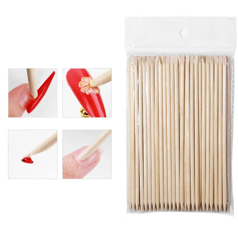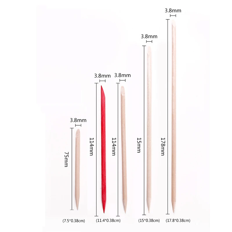 100 шт.компл. дизайн ногтей 4 разных размера палочки из оранжевого дерева Толкатель для кутикулы инструмент для удаления кутикулы и маникюра
