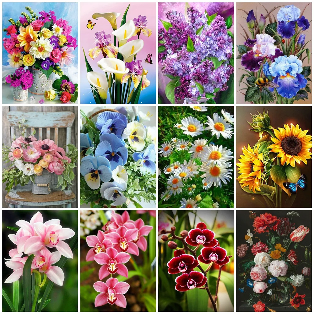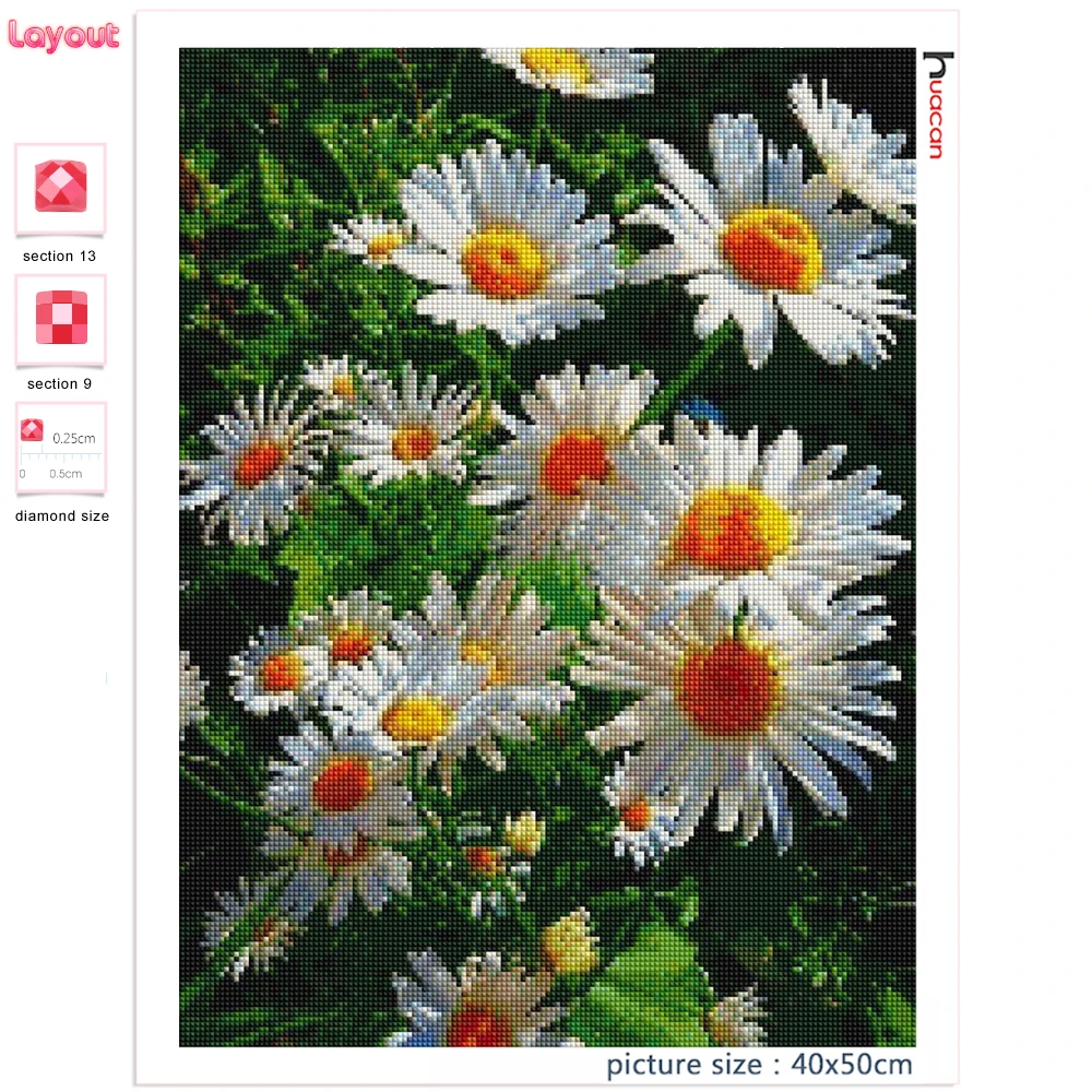 Алмазная живопись Huacan, цветок, Маргаритка, Орхидея, квадратнаякруглая вышивка, мозаика, Подсолнух, ирис, вышивка крестиком, домашний декор