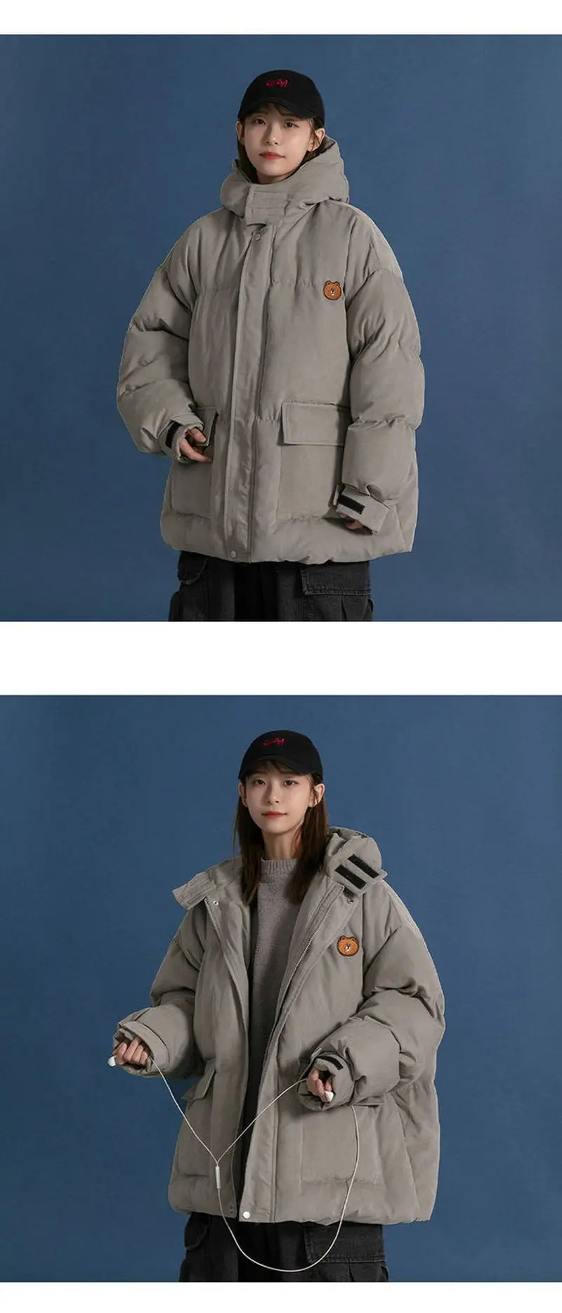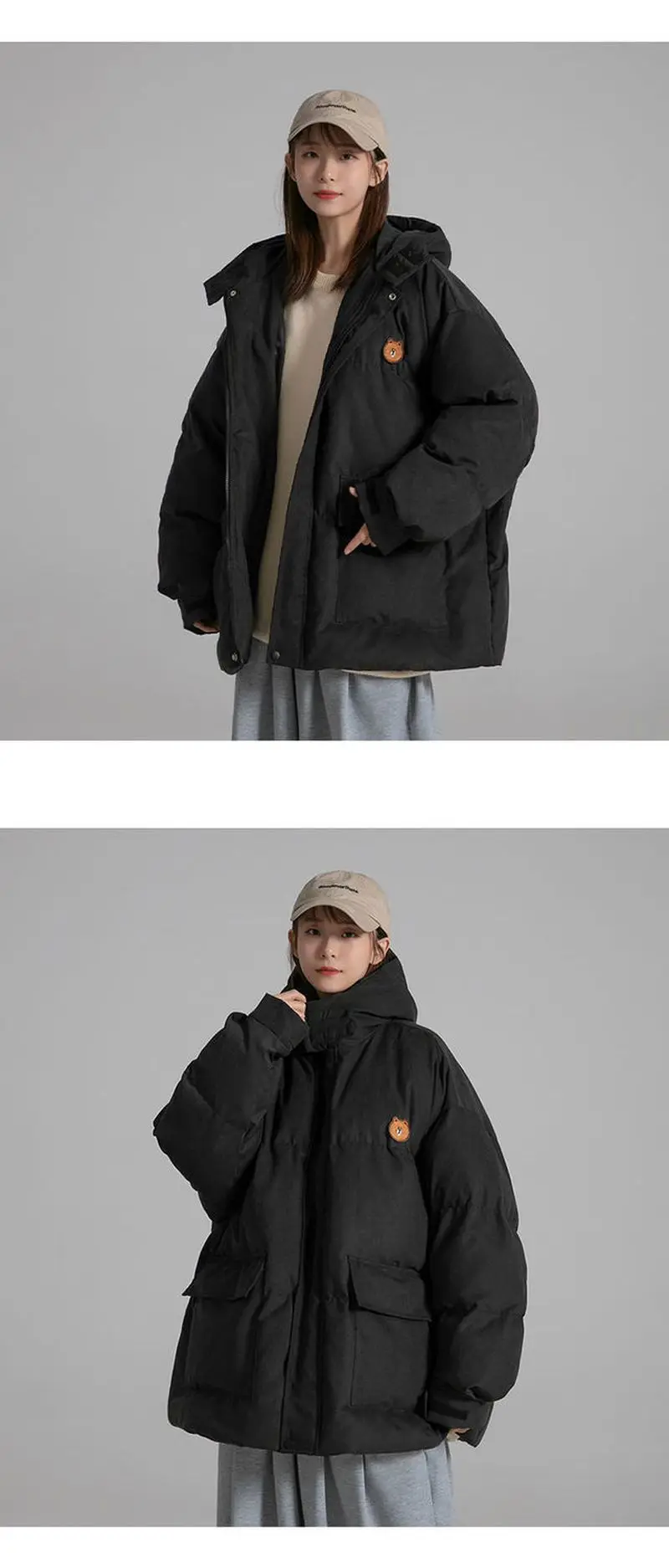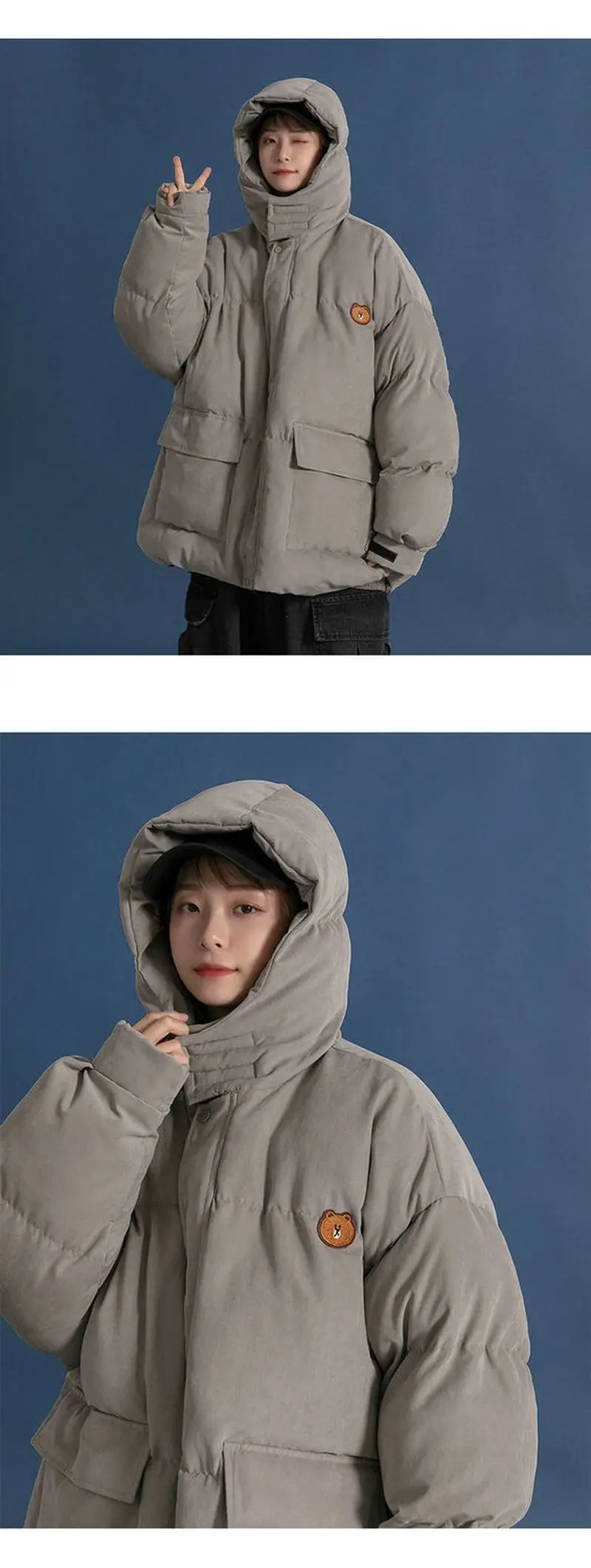 Женская Стеганая куртка в Корейском стиле, свободная Теплая стеганая куртка в стиле преппи для девушек и студенток, винтажная куртка в стиле Харадзюку с милым медведем, новинка зимы 2021