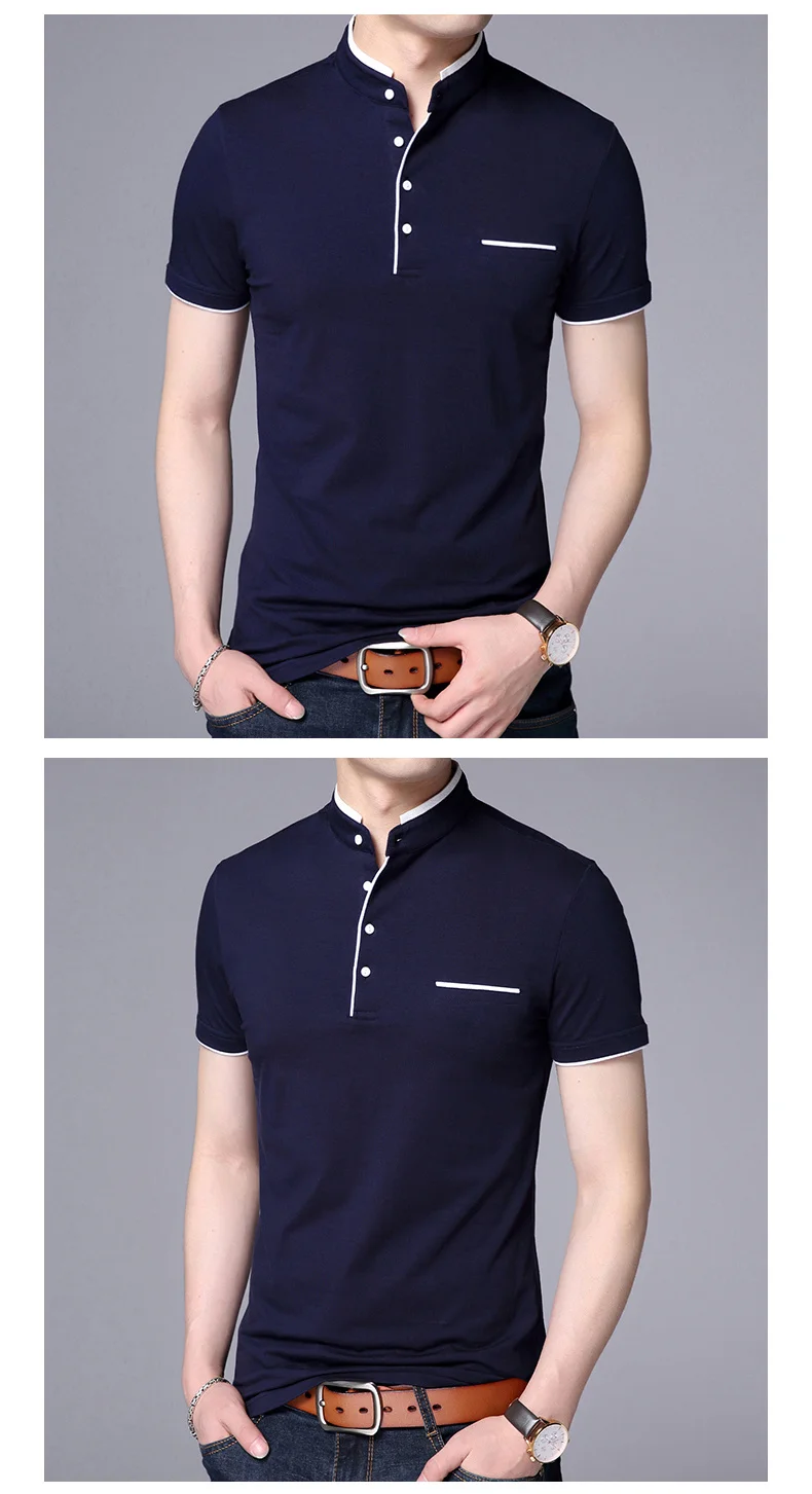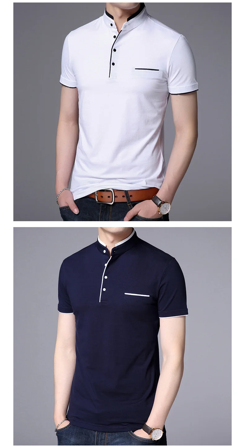 Мужские модные футболки с воротником-стойкой, футболка с коротким р...