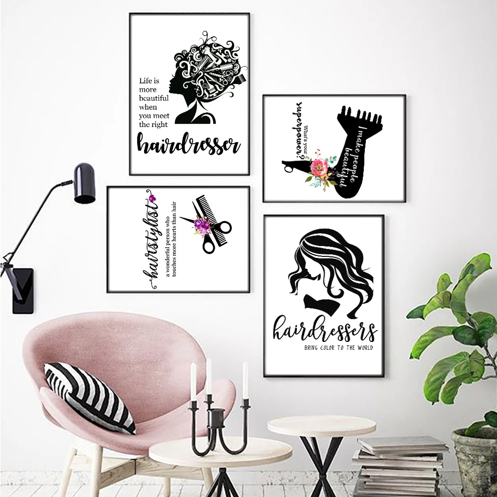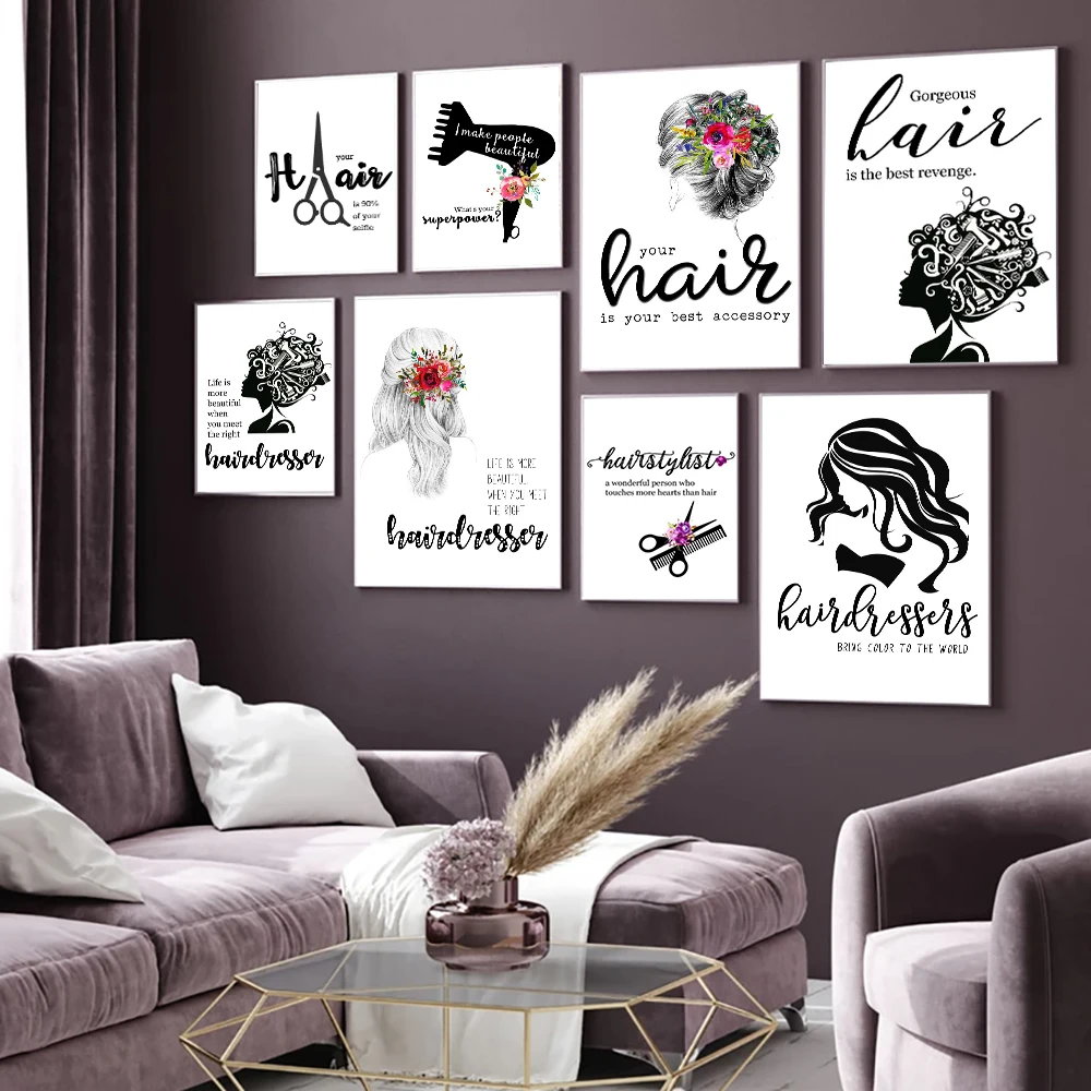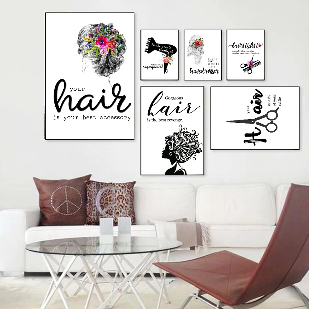 Скандинавская настенная Картина на холсте, расческа, плакат, печать, простота, женские волосы, изображения, современный салон красоты, Декор
