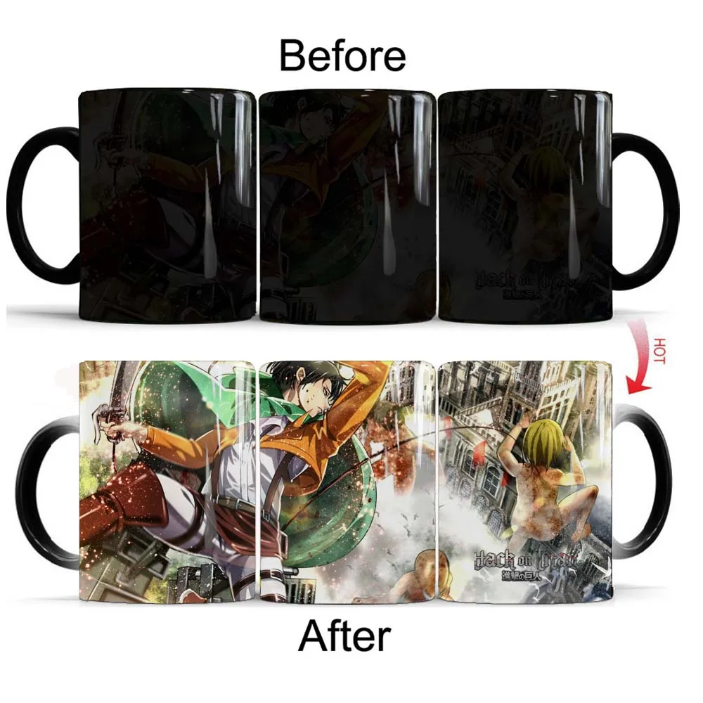 Attack on Titan Levi/Rivaille, меняющая цвет кружка 350 мл, керамическая креативная меняющаяся цветная Волшебная кофейная кружка "друзья", подарок на день рождения