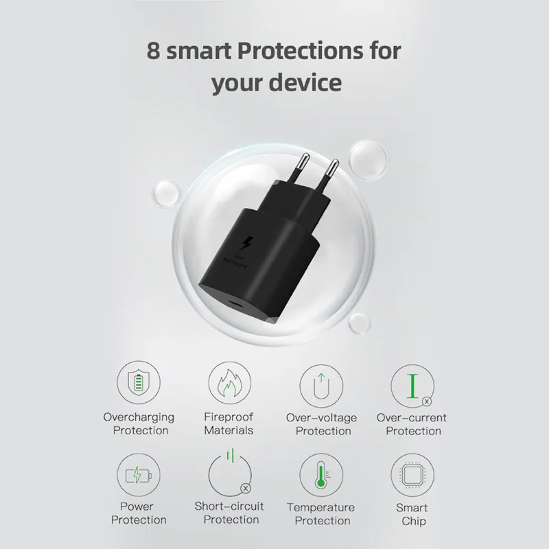 Подходит для: S21 Z Fold2 Note 20 UltraВход: 100 - 240 В-50-60 Гц 0.7AВыход:(PDO) 5,0 V-3.0A или 9,0 V-2.77A(PPS) 3,3-5,9 V-3,0 A или 3,3-11,0 V-2.25A