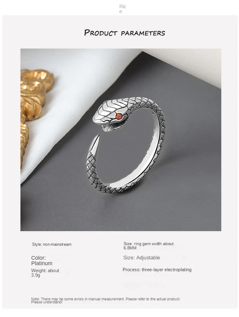 Кольцо в виде змеи, регулируемое, в европейском стиле, 1 шт.