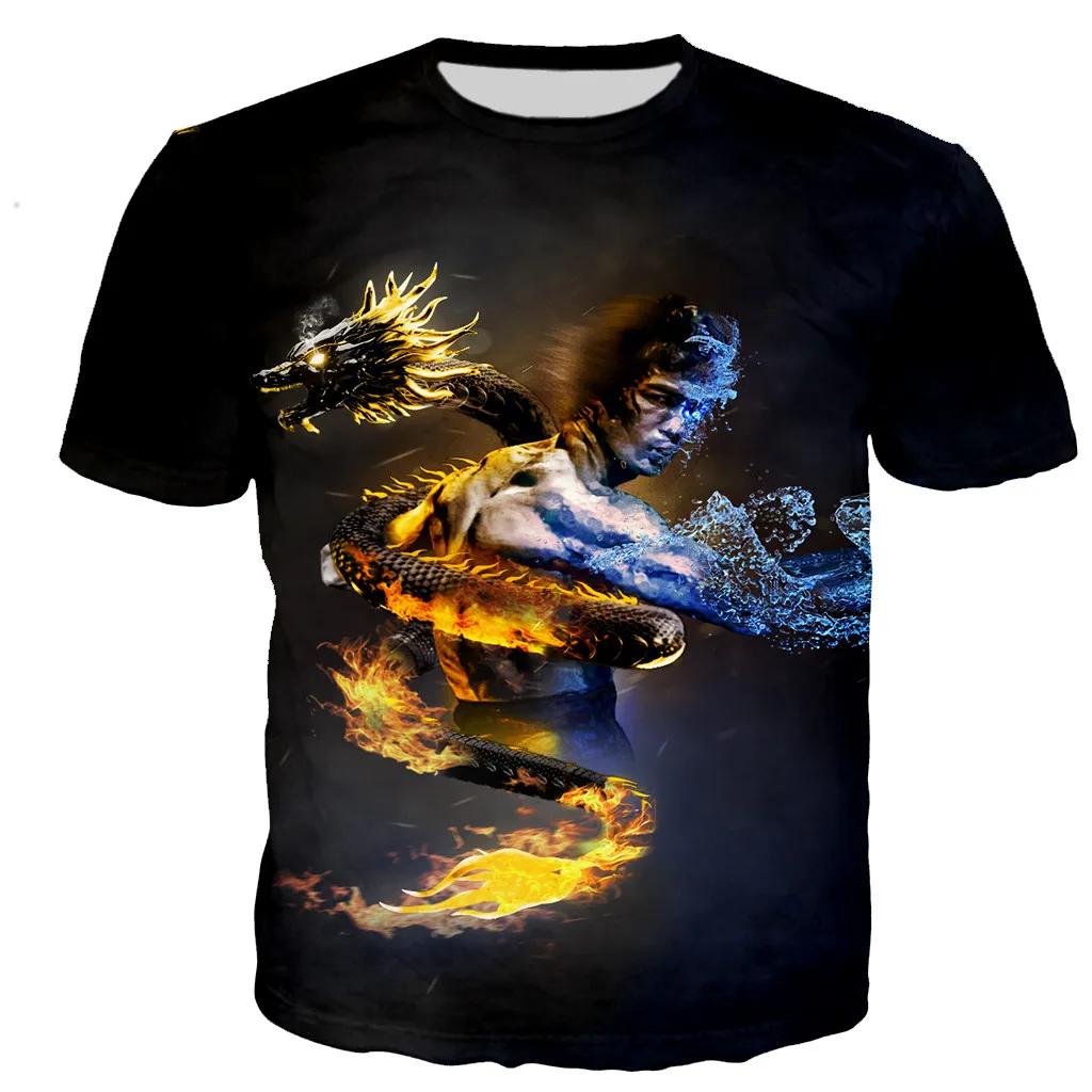 Новинка лета 2021, мужская и женская футболка с 3D принтом Брюса Ли...