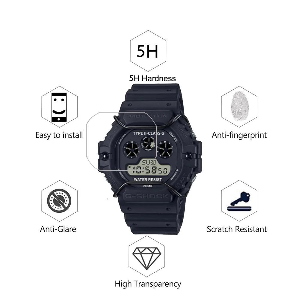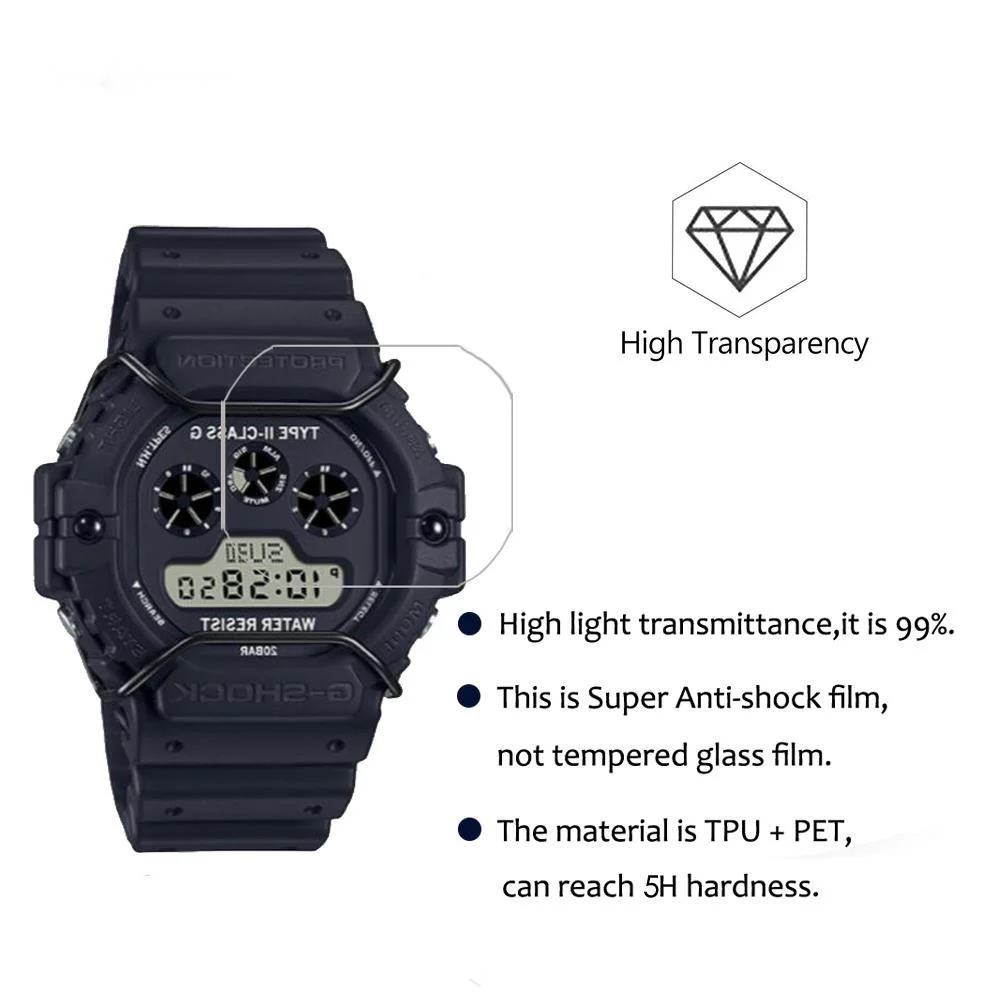 Комплект из 3 предметов, анти-шок ПЭТ-пленка для объектива с оптическими зумом Casio G-SHOCK DW-5900 DW5900 DW-5900RS DW-5900TH DW-5900DN Прозрачная защитная hd-пленка 5H анти-защитная пленка против царапин