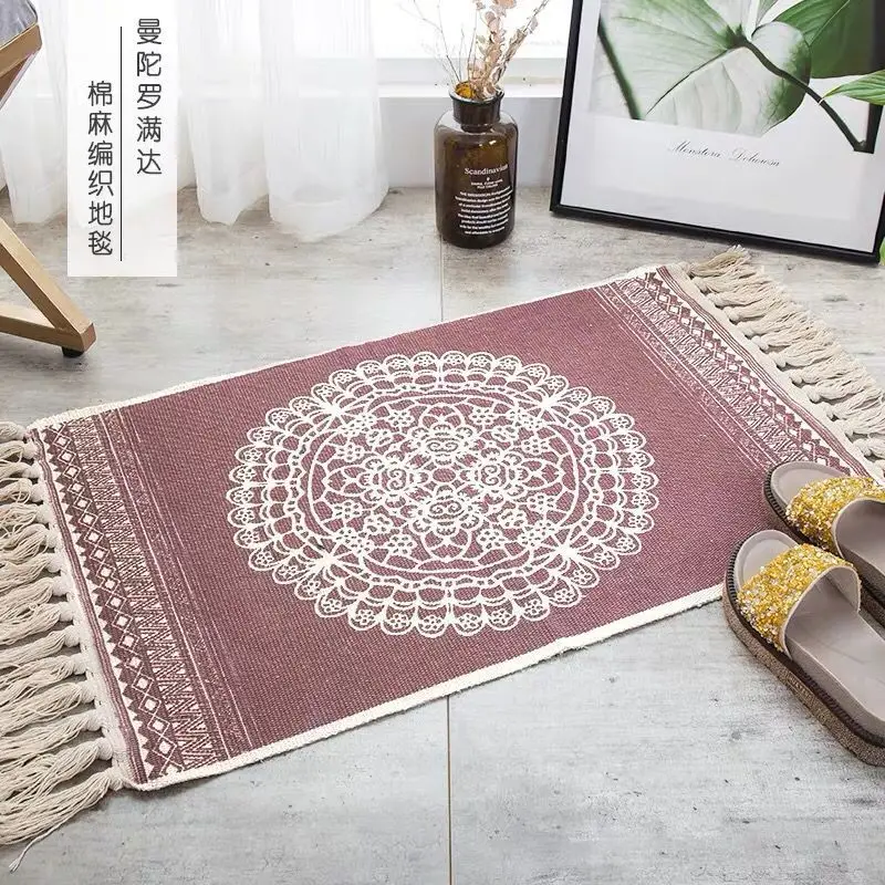 Вязаный небольшой ковер из хлопка и льна, ковер в этническом стиле ...