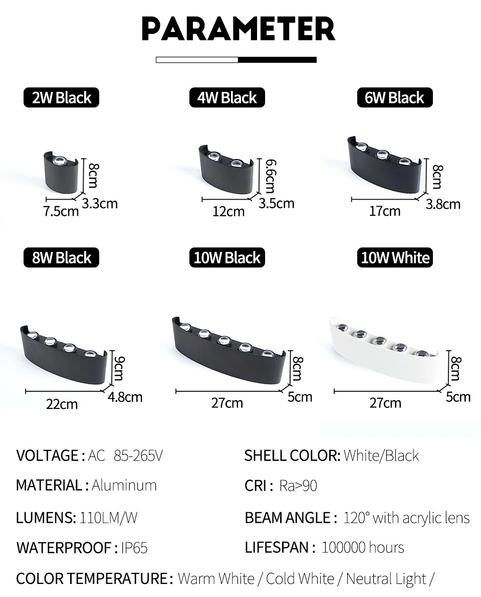 IP65 водонепроницаемый алюминиевый светодиодный настенный светильник для сада, теплый белый нейтральный белый холодный белый Светодиодный настенный светильник