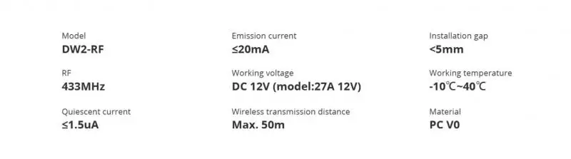 Примечание: SONOFF DW2-RF не поставляется с батареями в посылка. Он должен использоваться с RF шлюзом