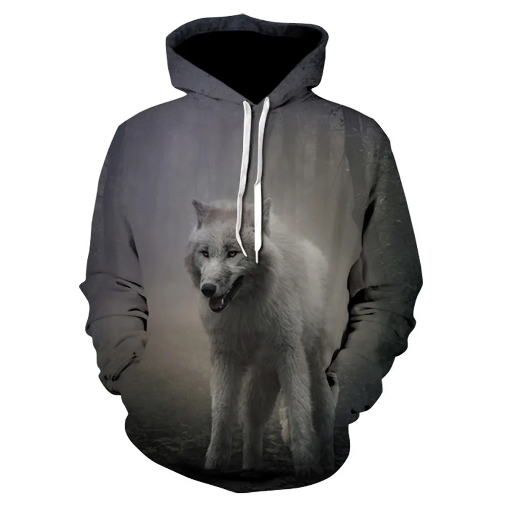 Толстовка Мужскаяженская с 3D-принтом волка, Свитшот оверсайз с кап...