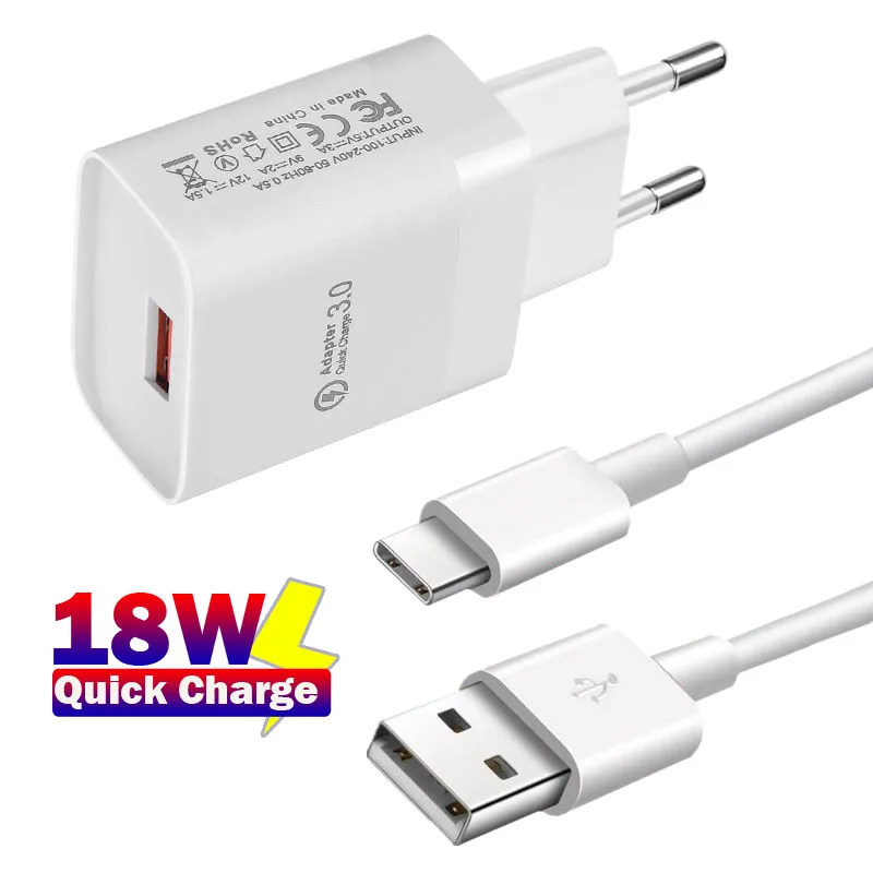 Сетевое зарядное устройство Quick Charge 3,0, 18 Вт, с кабелем типа C для Xiaomi Mi 11, Samsung A51, A52, iPhone QC 3,0