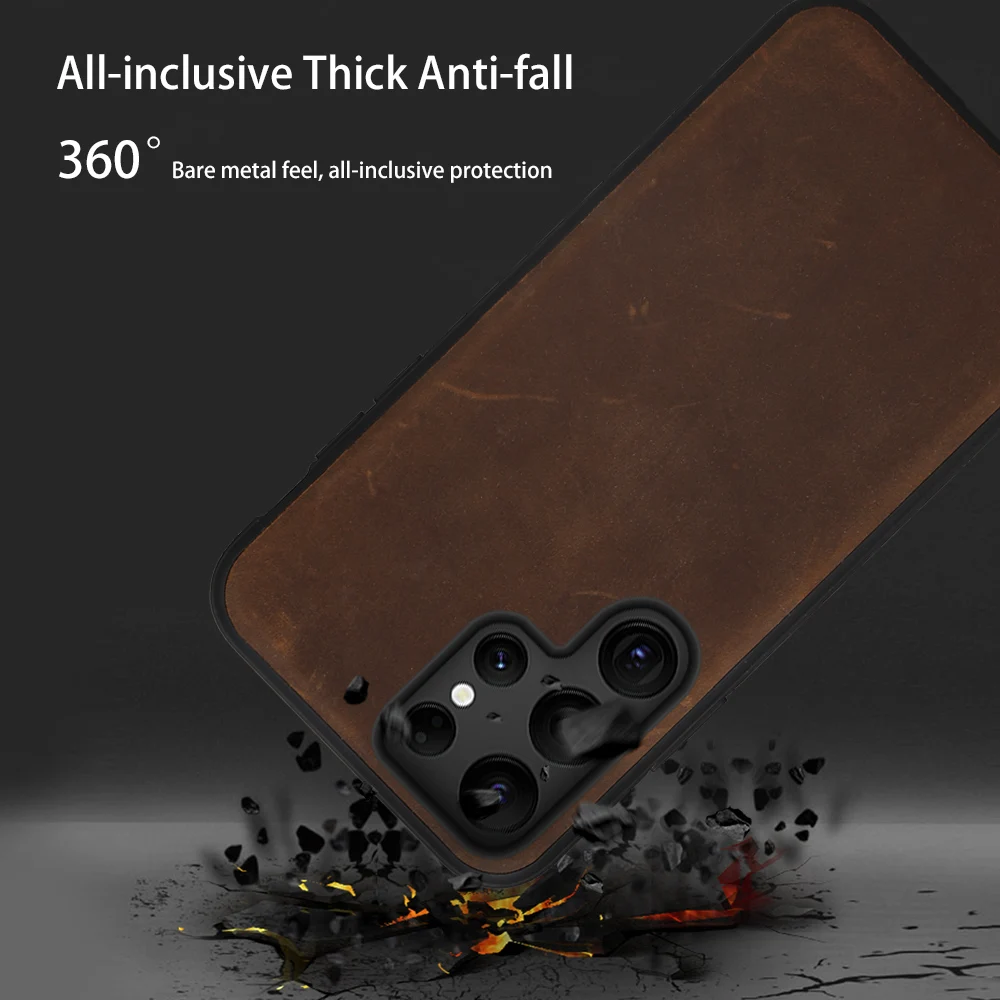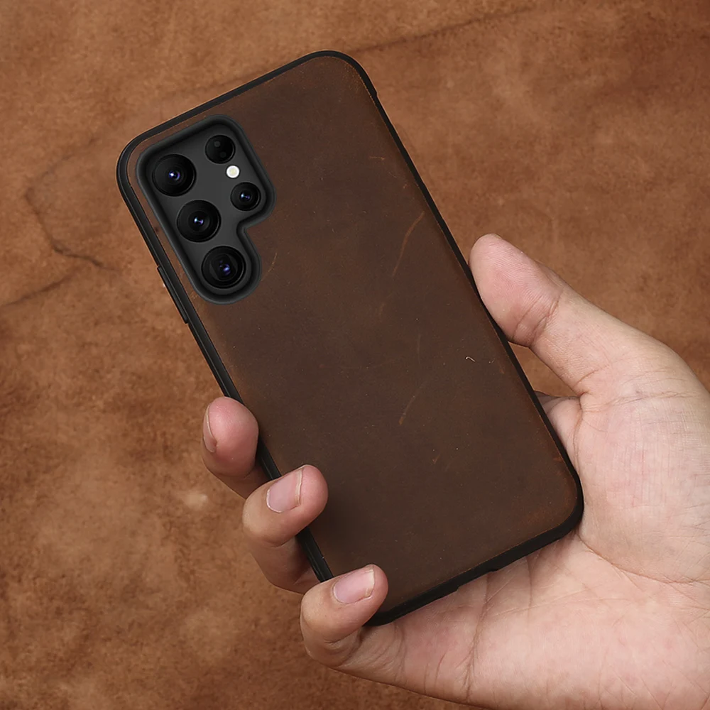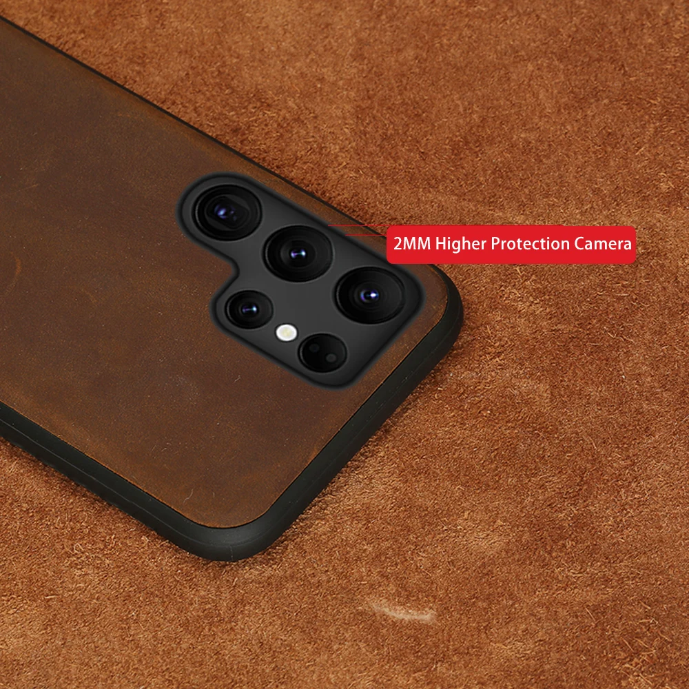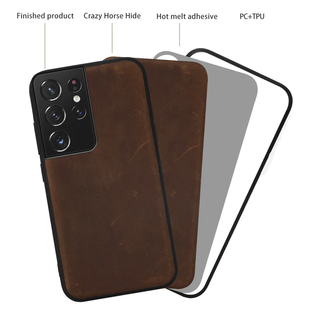 1. Материал задней части: 100% Натуральная воловья кожа.2. Внутренний материал: PC + TPU.3. Функция: Отличная защита от грязи, царапин и повреждений.4. 100% ручная работа, 100% абсолютно новый и хорошего качества.5. Отличный подарок для вашего любимого или для себя.Пожалуйста, не беспокойтесь о том, что изображение показывает не ту камеру, когда вы получаете продукт, это идеальное сочетание с точностью расположения отверстия камеры.