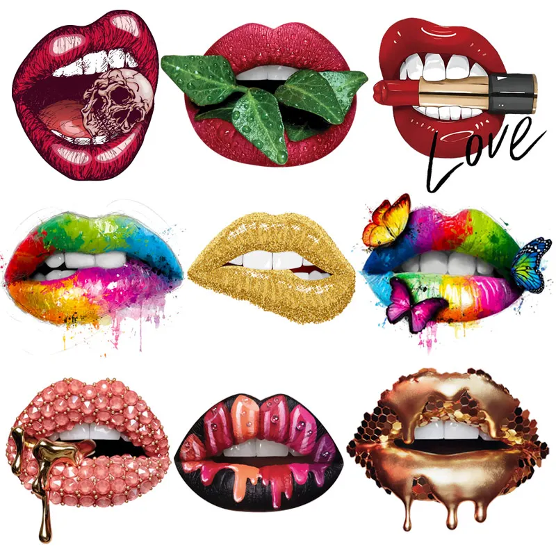 Мультяшные нашивки для губ, наклейки для одежды, термонаклейки «сделай сам», моющиеся для футболок, аппликация для губ для девочек