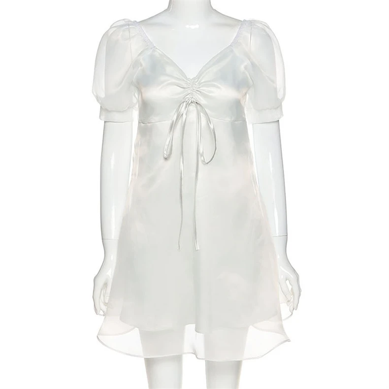 Описание товара: 2021 Мода Harajuku корейский стиль женский летний сарафан Феи Белый Тюль Мини-Платье с пышными короткими рукавами милая одежда Kawaii