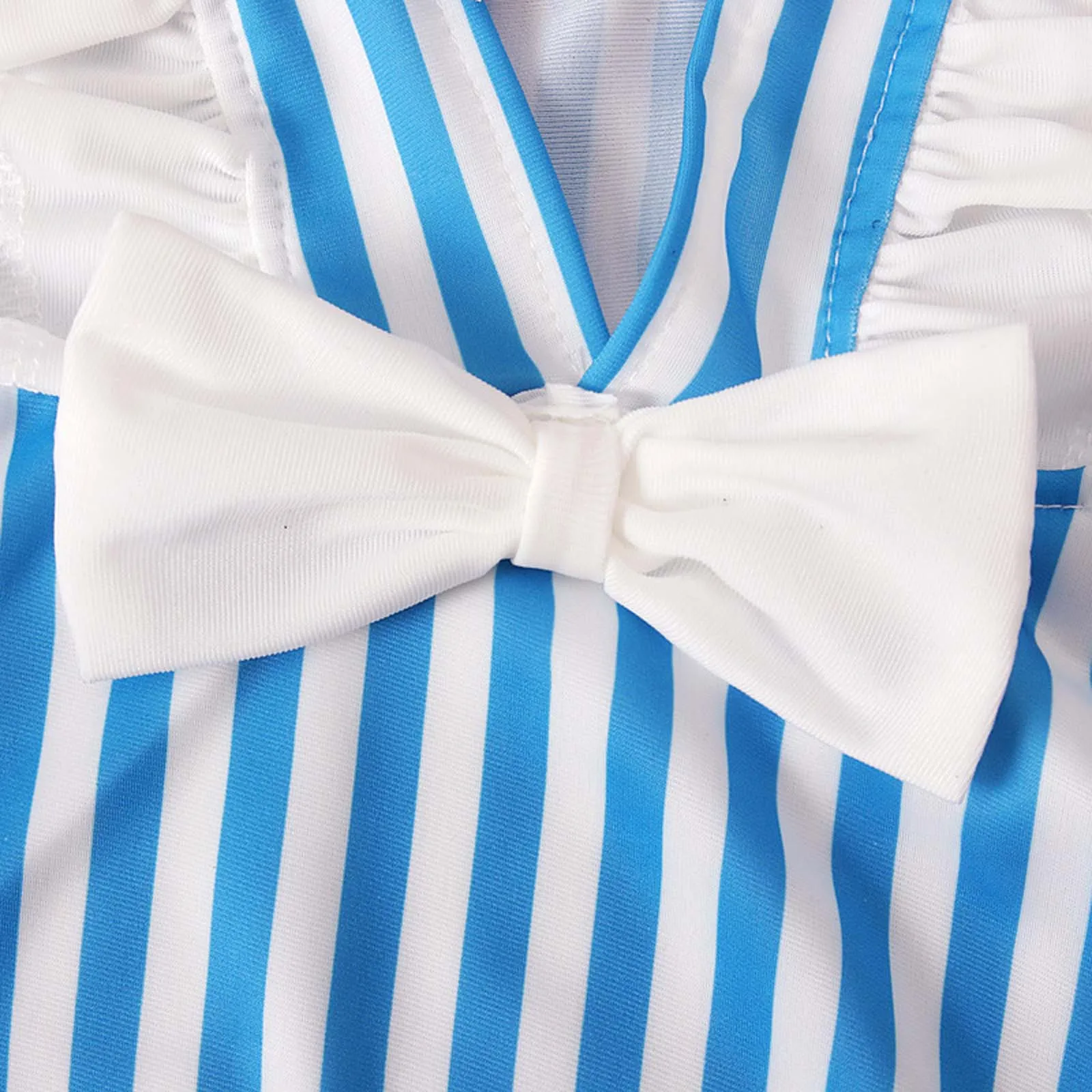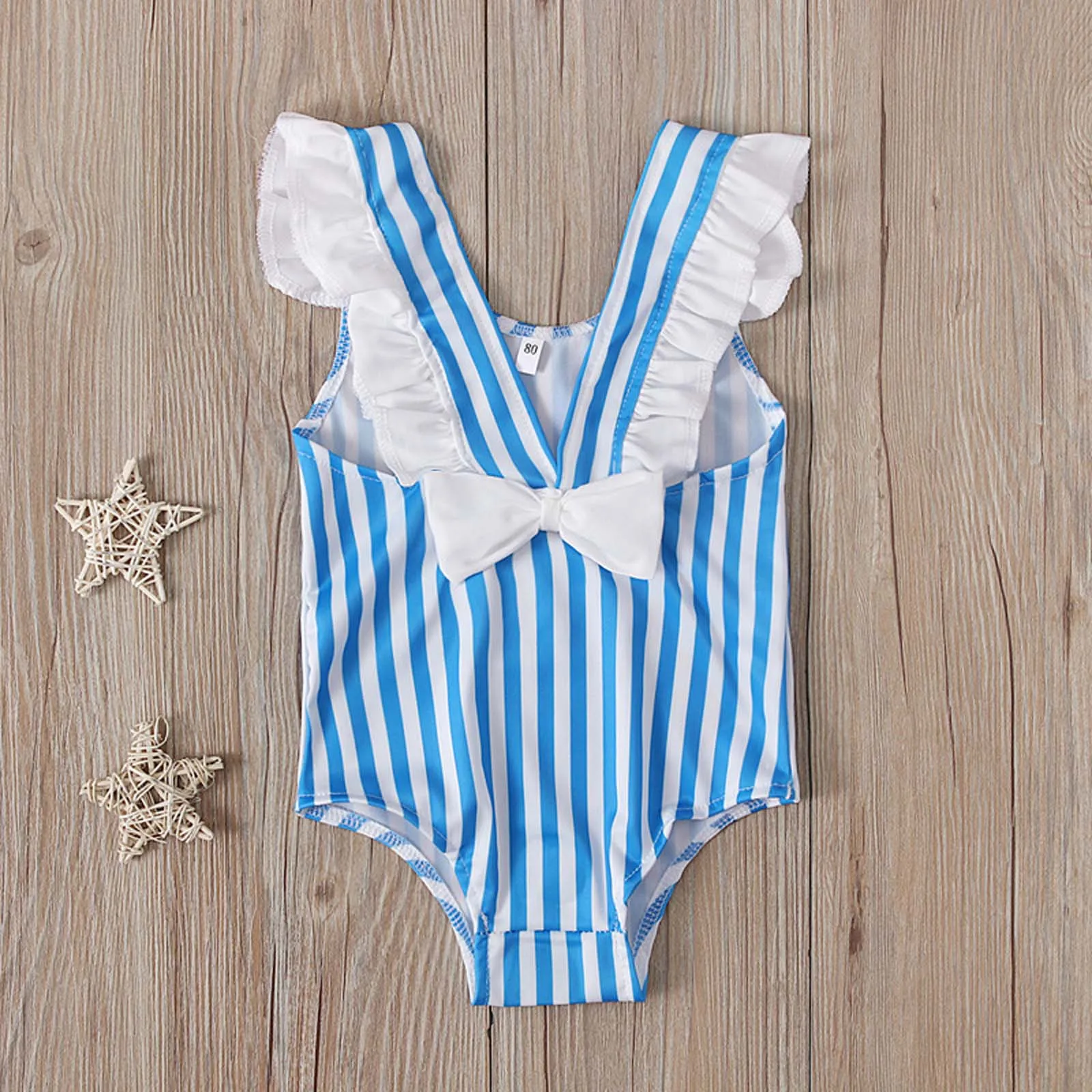 Цельный купальник без рукавов в полоску с открытой спиной и бантом для малышей
