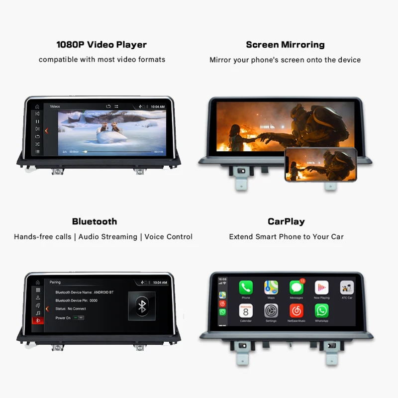 Для BMW 5 серии F10/F11 2011-2012 CIC системаДля BMW 5 серии F10/F11 2013-2017 NBT системаДля BMW 5 серия F18 2010-2015Основные характеристики● Поддержка Mirrorlink - Android и IOS.● Встроенная чувствительность и GPS.● Встроенный WIFI, поддержка 3D карты• Поддержка Multi Touch.● Встроенный BMW Canbus, поддержка iDrive.● Поддержка управления рулем.● Поддержка оригинальной информации о автомобиле.● Звук GPS выводится из переднего левого динамика.● Совместимость с оригинальным экраном 6,5/8,8/10,25 дюйма.● Совместим с/без оптического волокна.● Совместимость с/без оригинальной навигации● Поддержка оригинальных всех функций.• Поддержка Оригинальное автомобильное радио.● Встроенный Bluetooth и поддержка оригинального Bluetooth.● Поддержка Idrive управления в меню Android.● Поддержка Idrive управления в оригинальном меню.● Поддержка оригинальной/послепродажной камеры.● Поддержка траектории парковки/радара.● Поддержка AUX переключатель автоматически-некоторые старые автомобили переключаются вручную