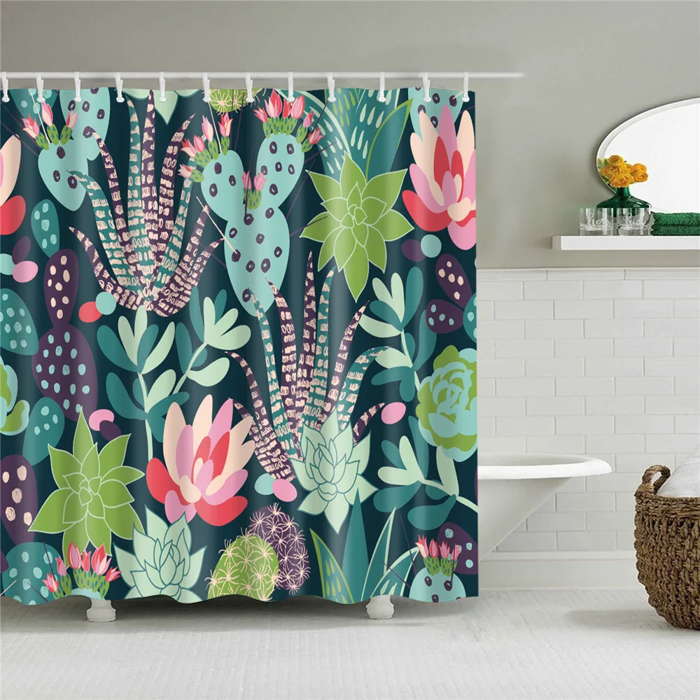 Занавеска для душа, тропический кактус, альпака, набор из 12 крючко...