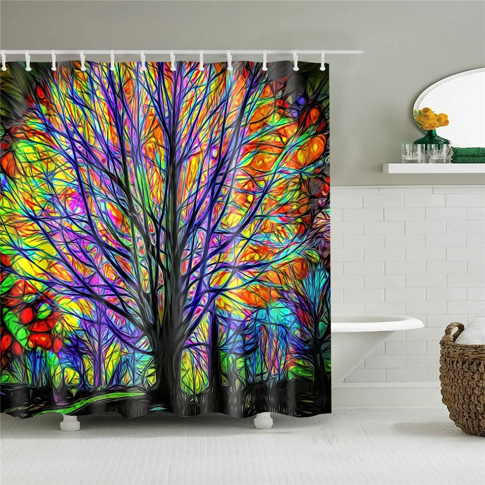 Занавески для душа из полиэстера, водостойкие, с 3D-принтом леса