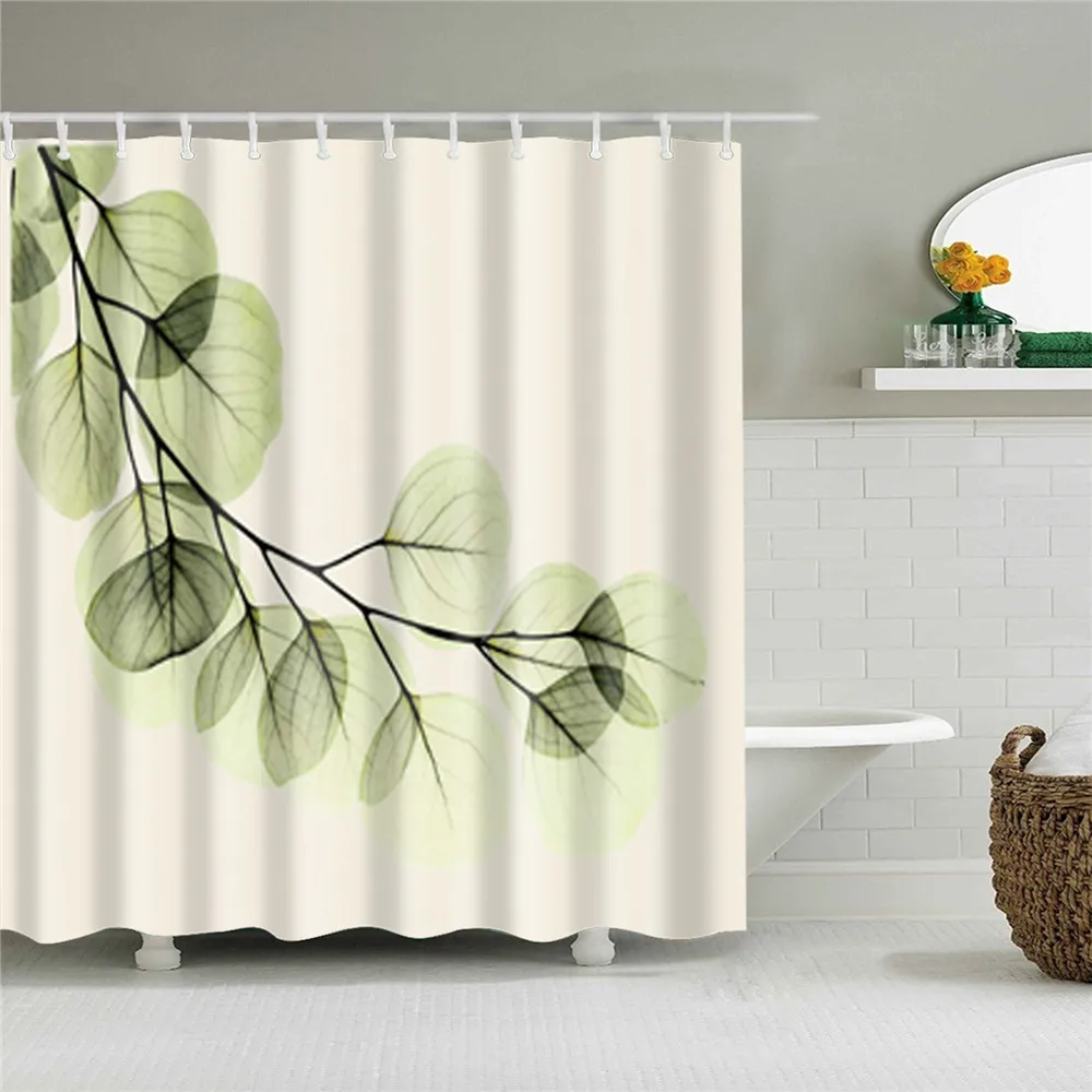Занавеска для душа в ванную комнату с листьями растений, водонепрон...