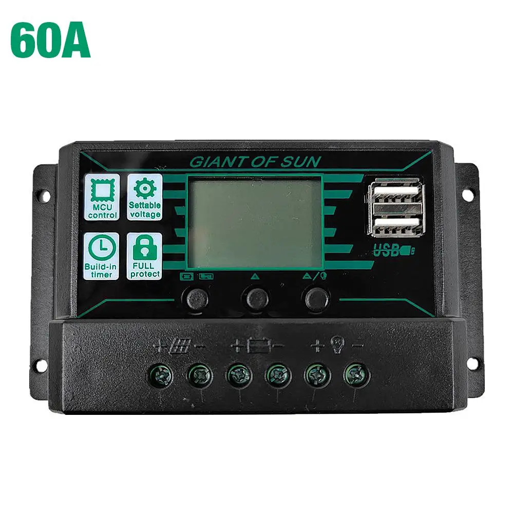 MPPT PWM 2-в-1 Контроллер заряда солнечной батареи 12В 24В Регулятор батареи солнечной панели 2USB порт ЖК-дисплей 10A 20A 30A 40A 50A 60A 100A