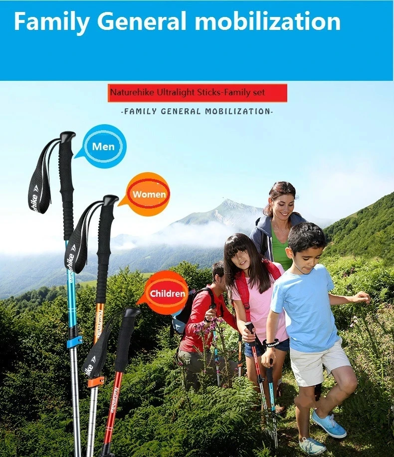 Палки Naturehike для взрослых и детей, ультралегкие складные палки для треккинга, палки для прогулок, кемпинга, семейных походов