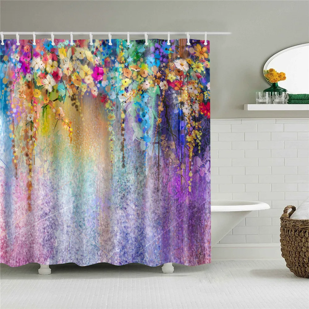 Занавеска для душа из водонепроницаемого полиэстера с цветами, живо...