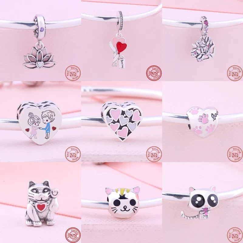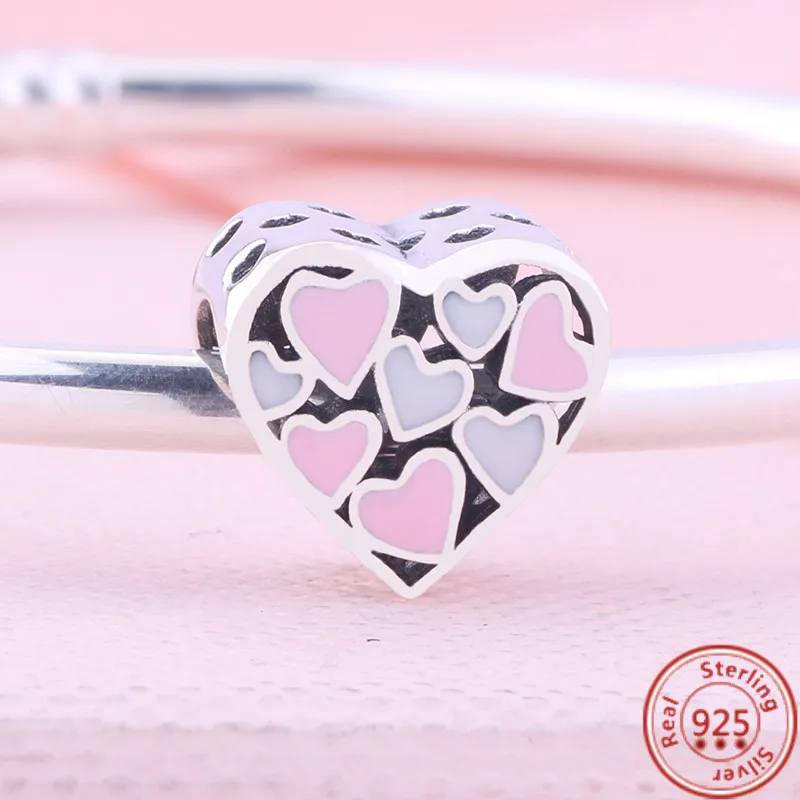 Женские браслеты из серебра 925 пробы, с подвесками в виде сердечек