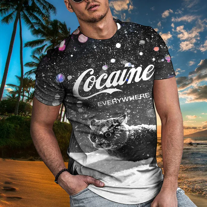 Мужская футболка с 3D-принтом, Повседневная Свободная футболка с короткими рукавами и цифровой печатью снежного кота в европейском и американском стиле, 2021