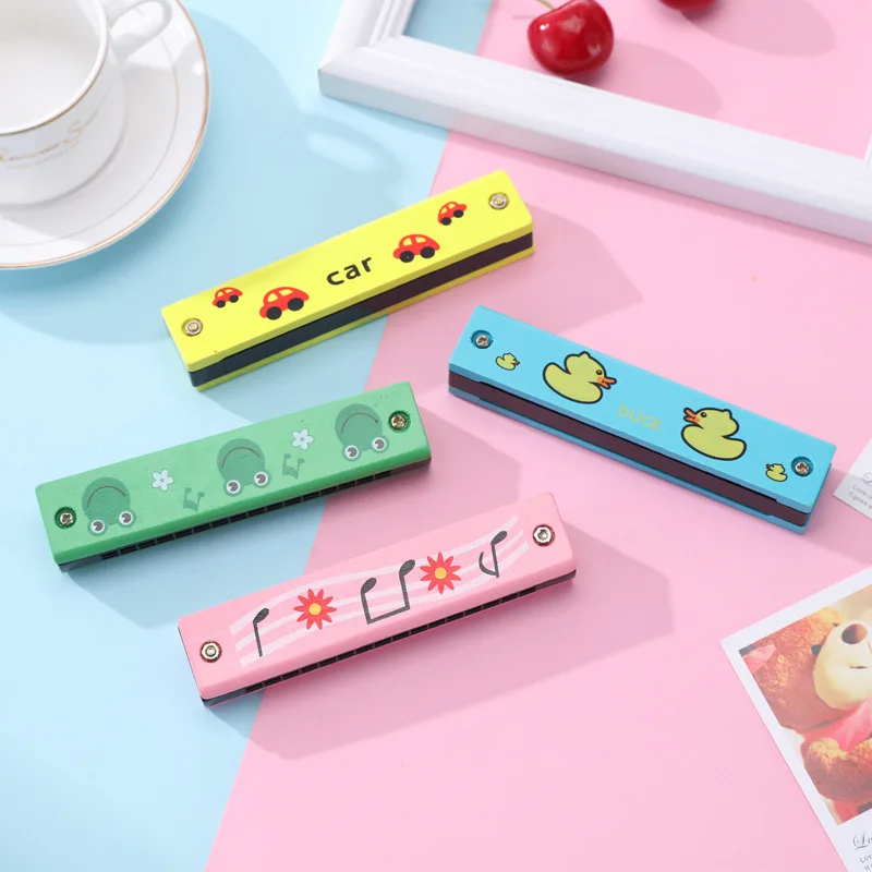 Детская деревянная двухрядная гармоника с 16 отверстиями, милая мультяшная Детская Музыкальная развивающая игрушка для начинающих