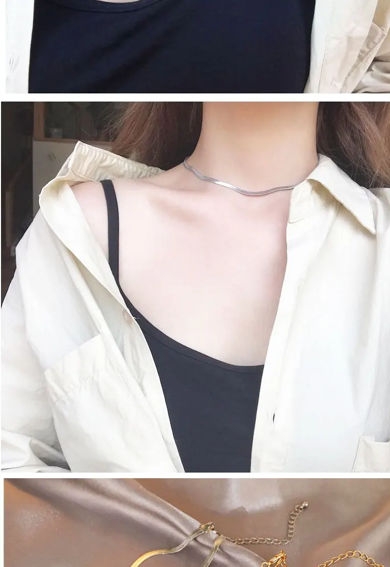 Новое поступление, женское Плоское Ожерелье kpop золотого и серебряного цвета, Винтажное колье-чокер до ключиц, змеиная цепочка, ожерелье для женщин и мужчин, ювелирные изделия