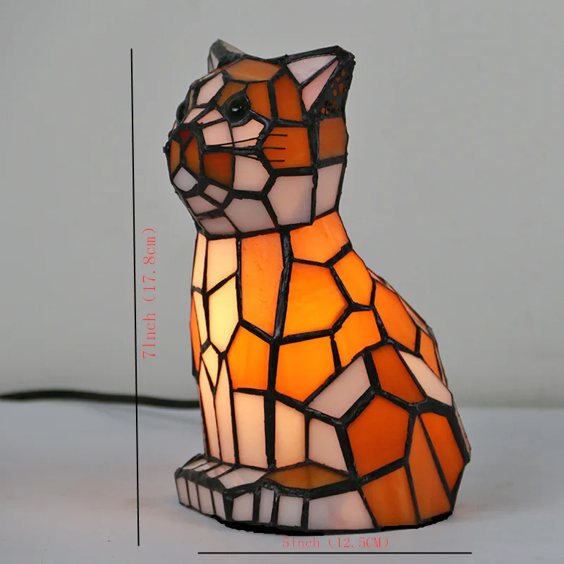 Настольная лампа Тиффани в виде кота и собаки, ночсветильник в евро...