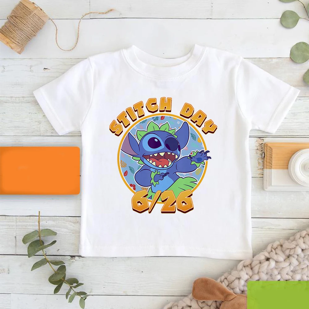 Модная Милая и пушистая футболка Disney с изображением Лило и ститча на день стежка 626, детская забавная Повседневная футболка, одежда для мальчиков и девочек