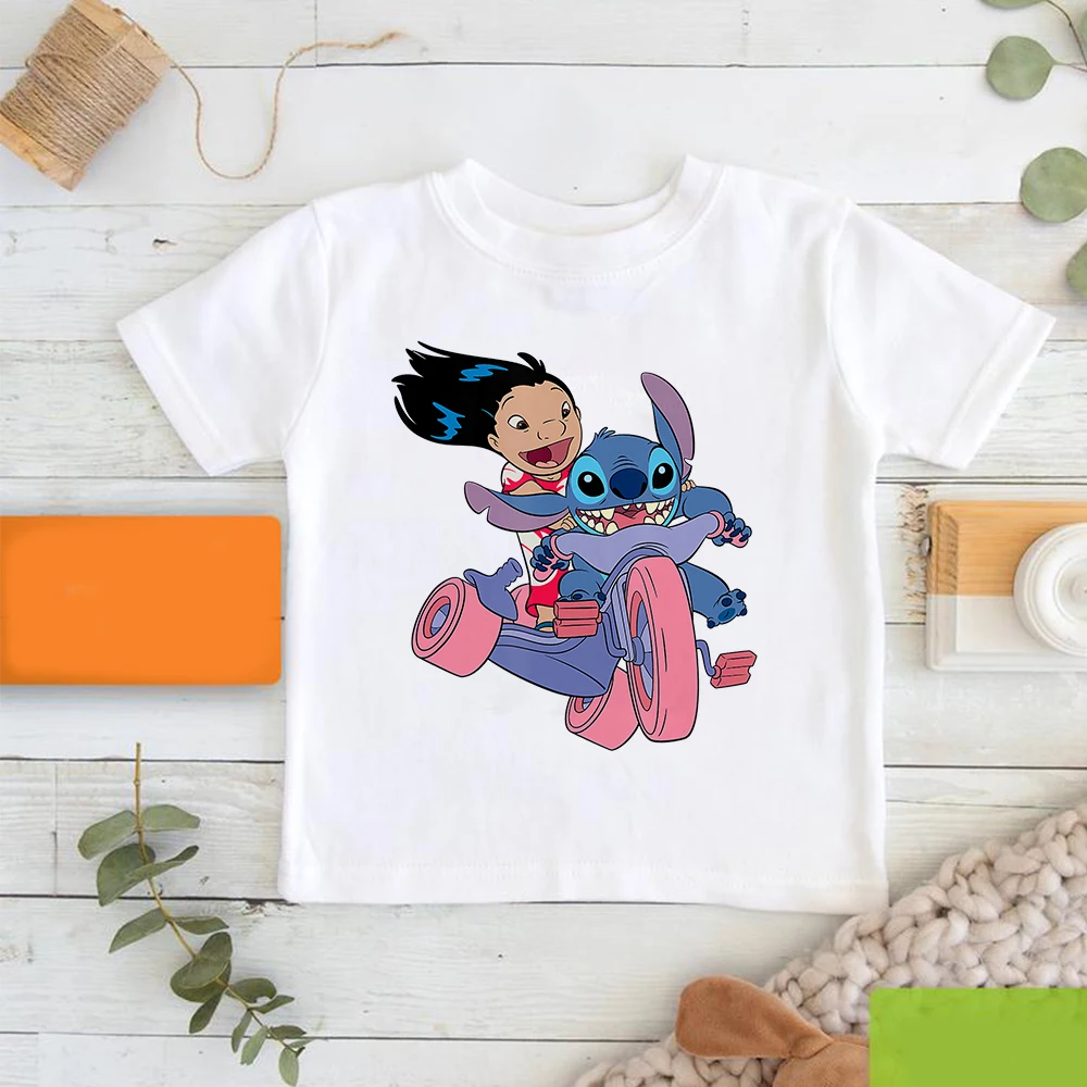 Детские футболки с рисунком Лило и Стич, лето, новинка, детские чер...