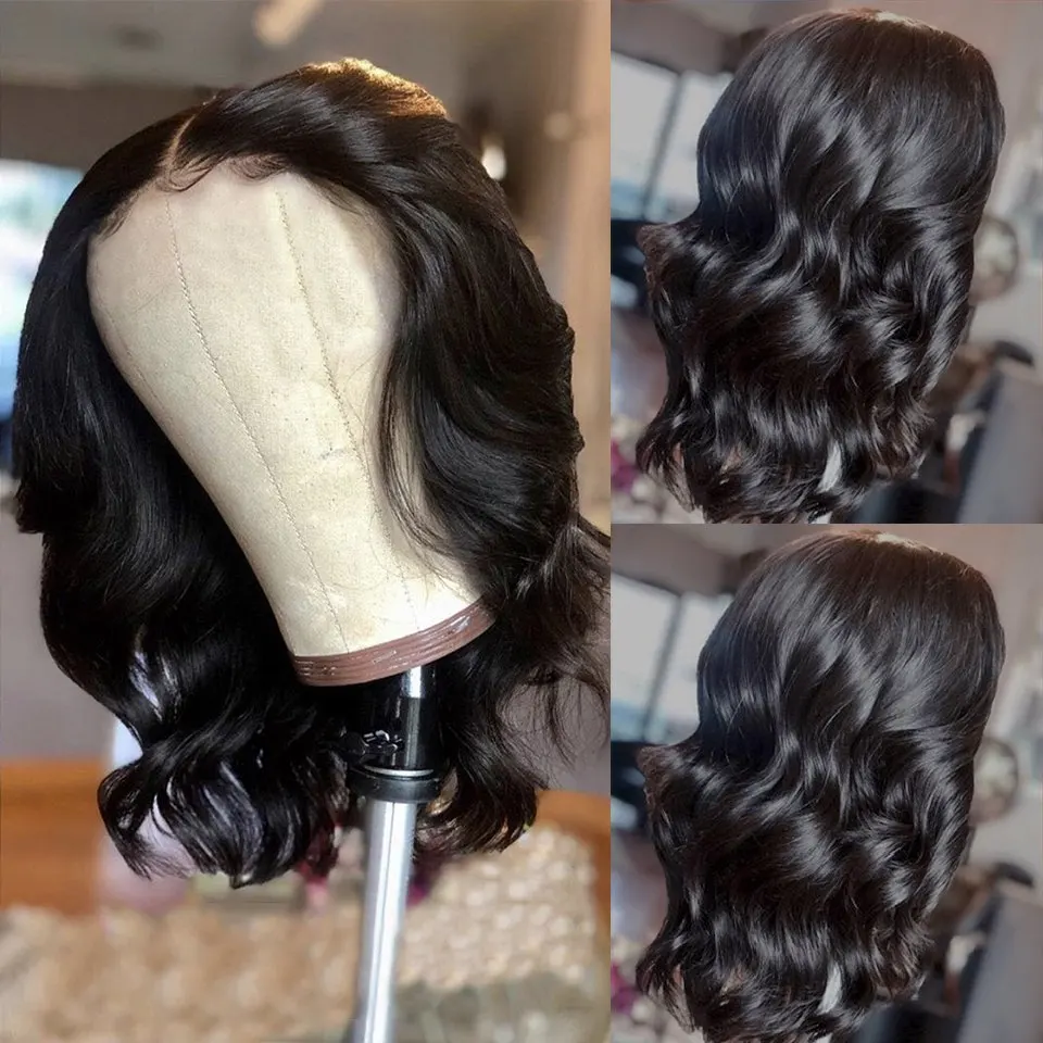 Парик С Короткими Кружевными передними натуральными волосами 13x6, бразильский парик с застежкой 4x4, плотность 180, для черных женщин
