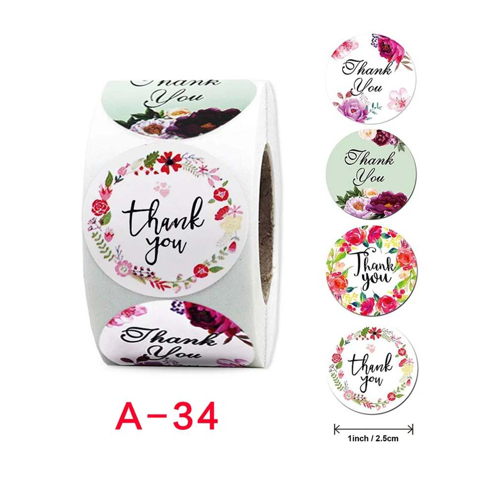 500 шт.рулон Спасибо наклейки Цветочный принт уплотнения бумажные н...