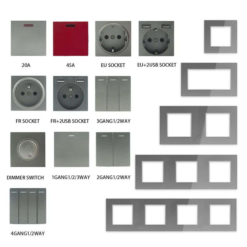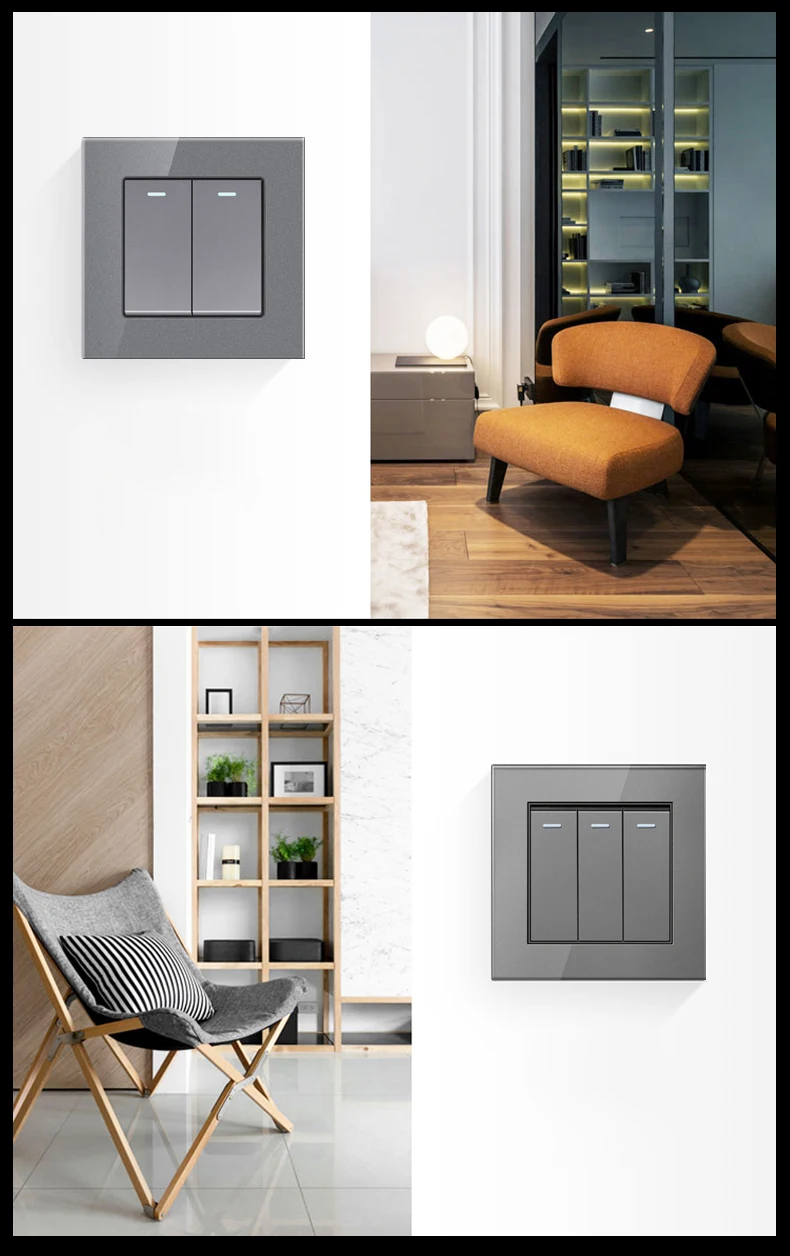 Настенный светильник ель света в виде серых кнопок на 1, 2, 3, 4 клавиши выключатель света розетки и выключатели диммер 220 v кнопки розетки электрические кнопка включения выключатели света 220v включатель света