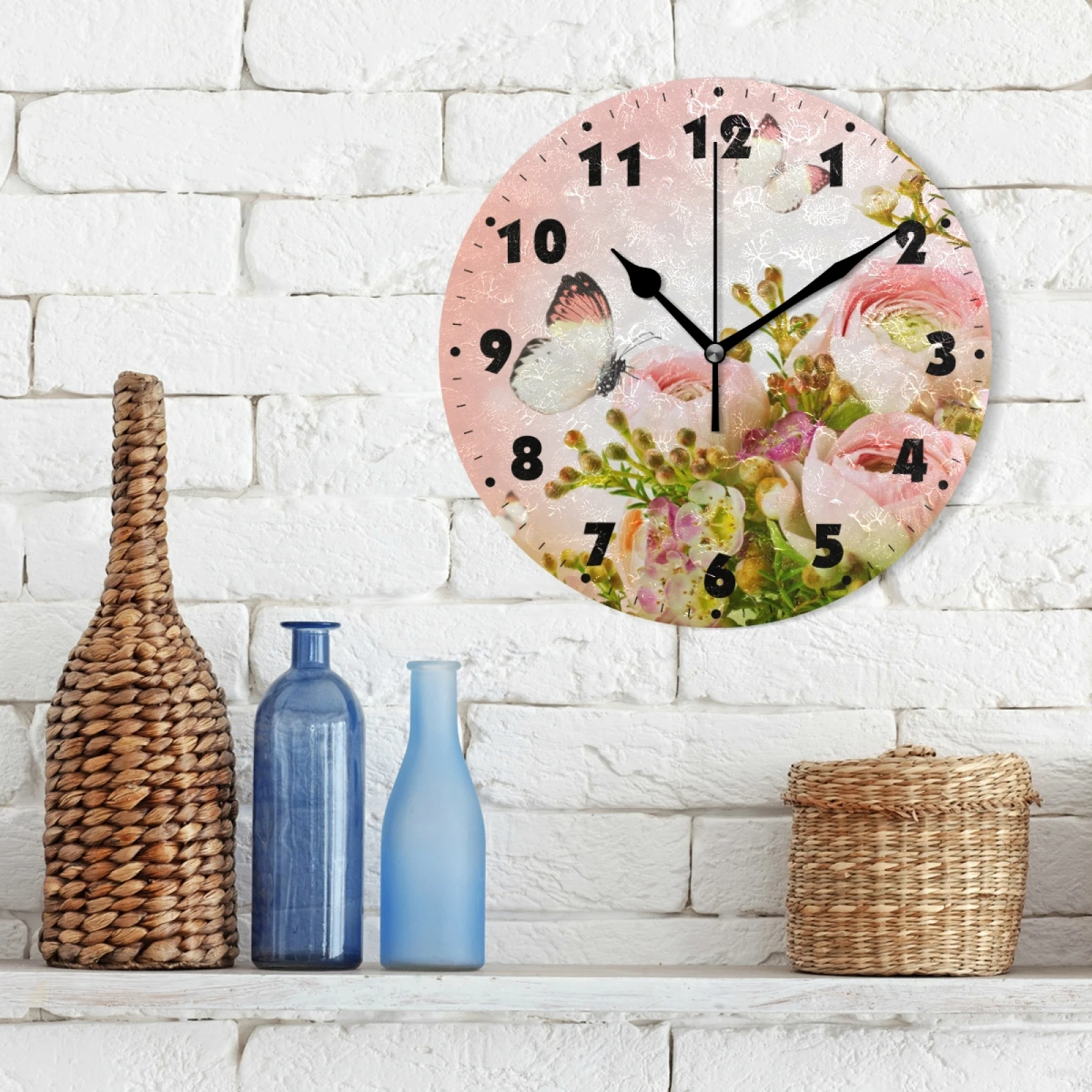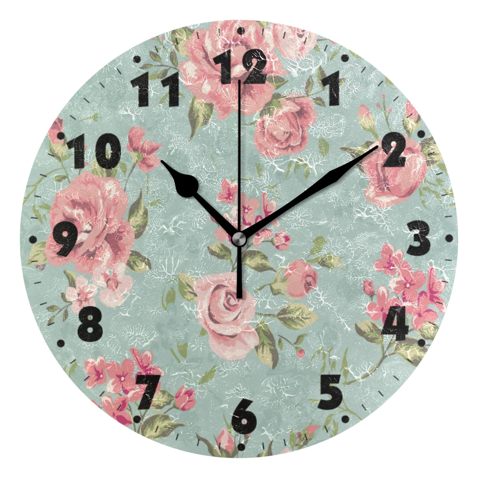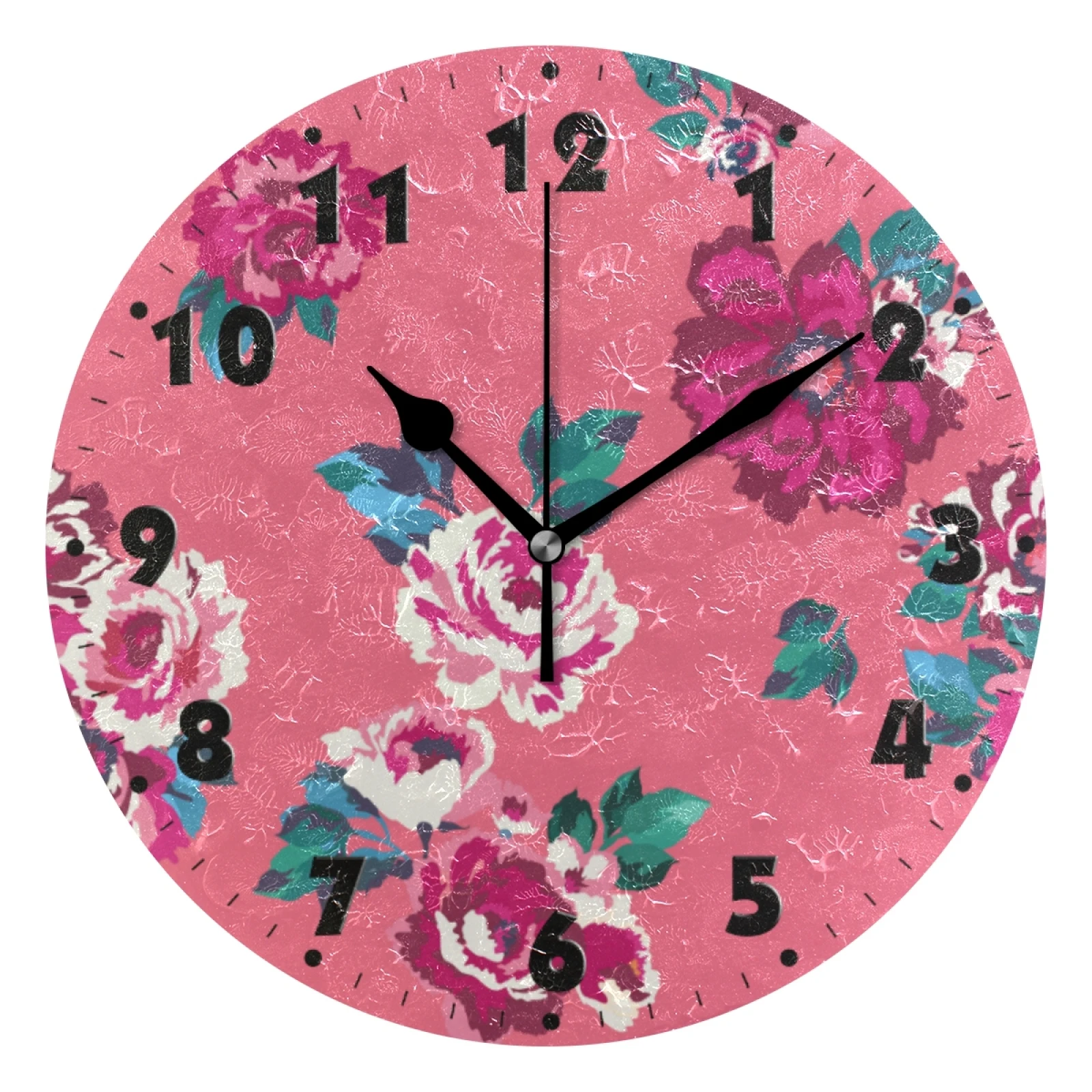 Винтажные круглые цифровые настенные часы с цветочным принтом на батарейках, бесшумные настенные часы для спальни, гостиной, украшения