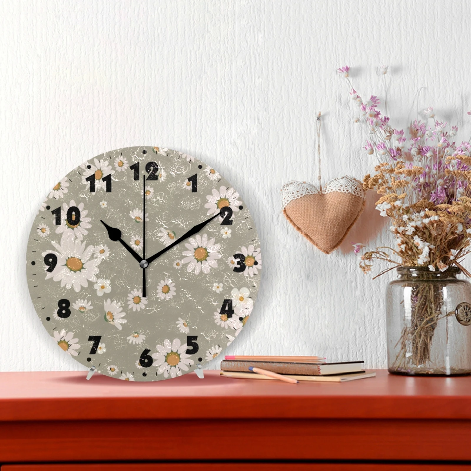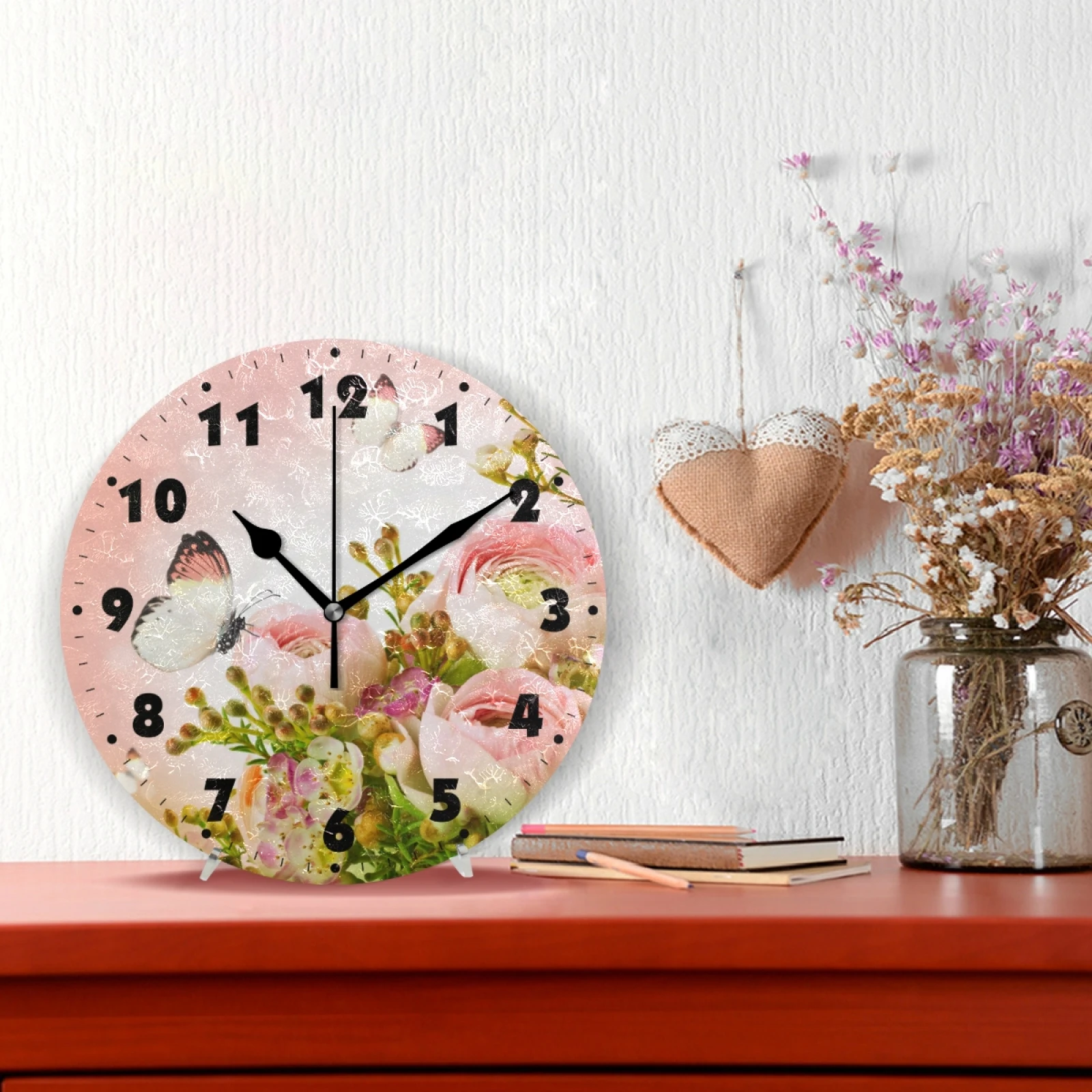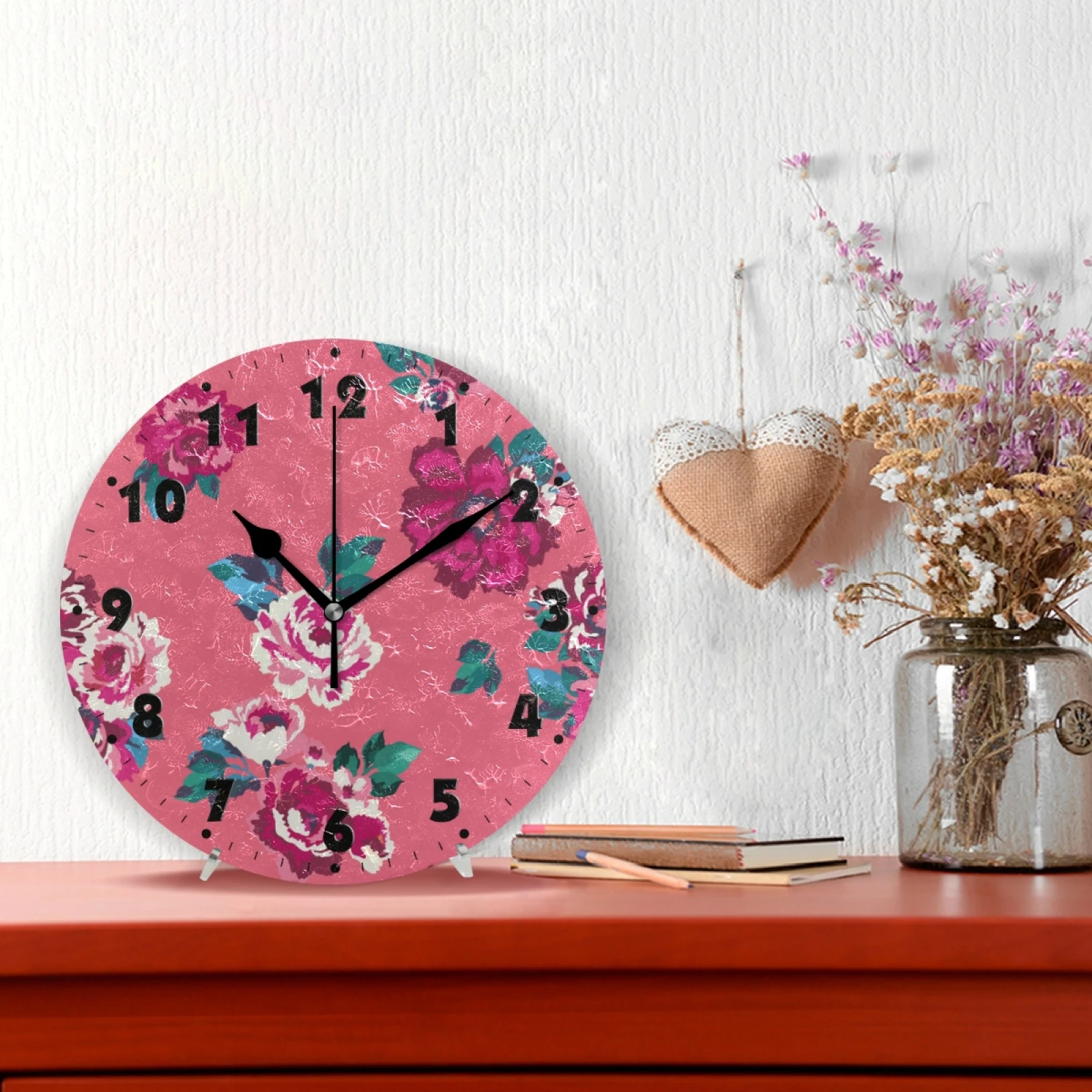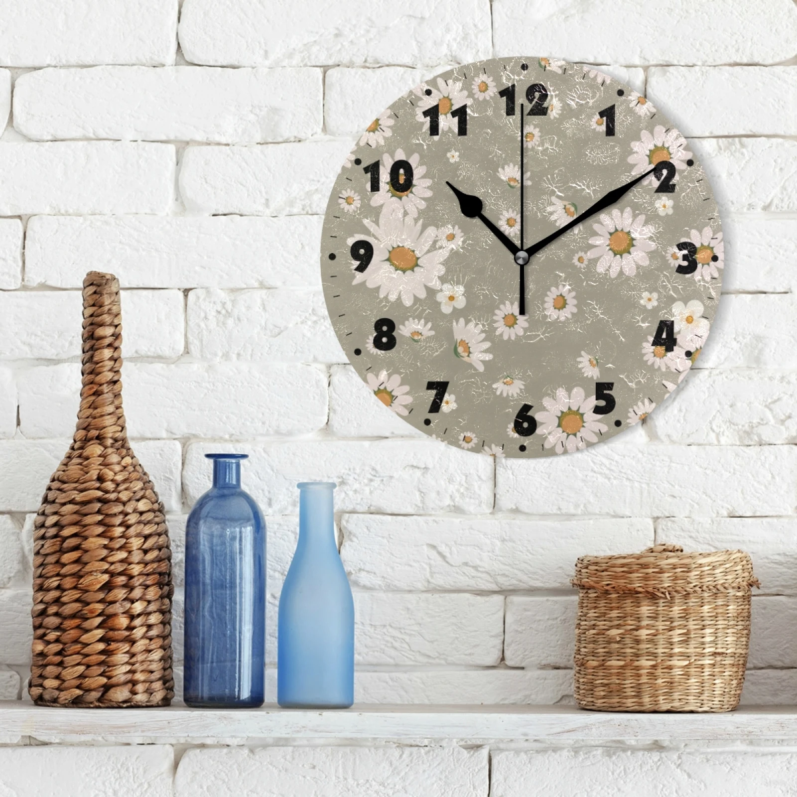 Винтажные круглые цифровые настенные часы с цветочным принтом на батарейках, бесшумные настенные часы для спальни, гостиной, украшения