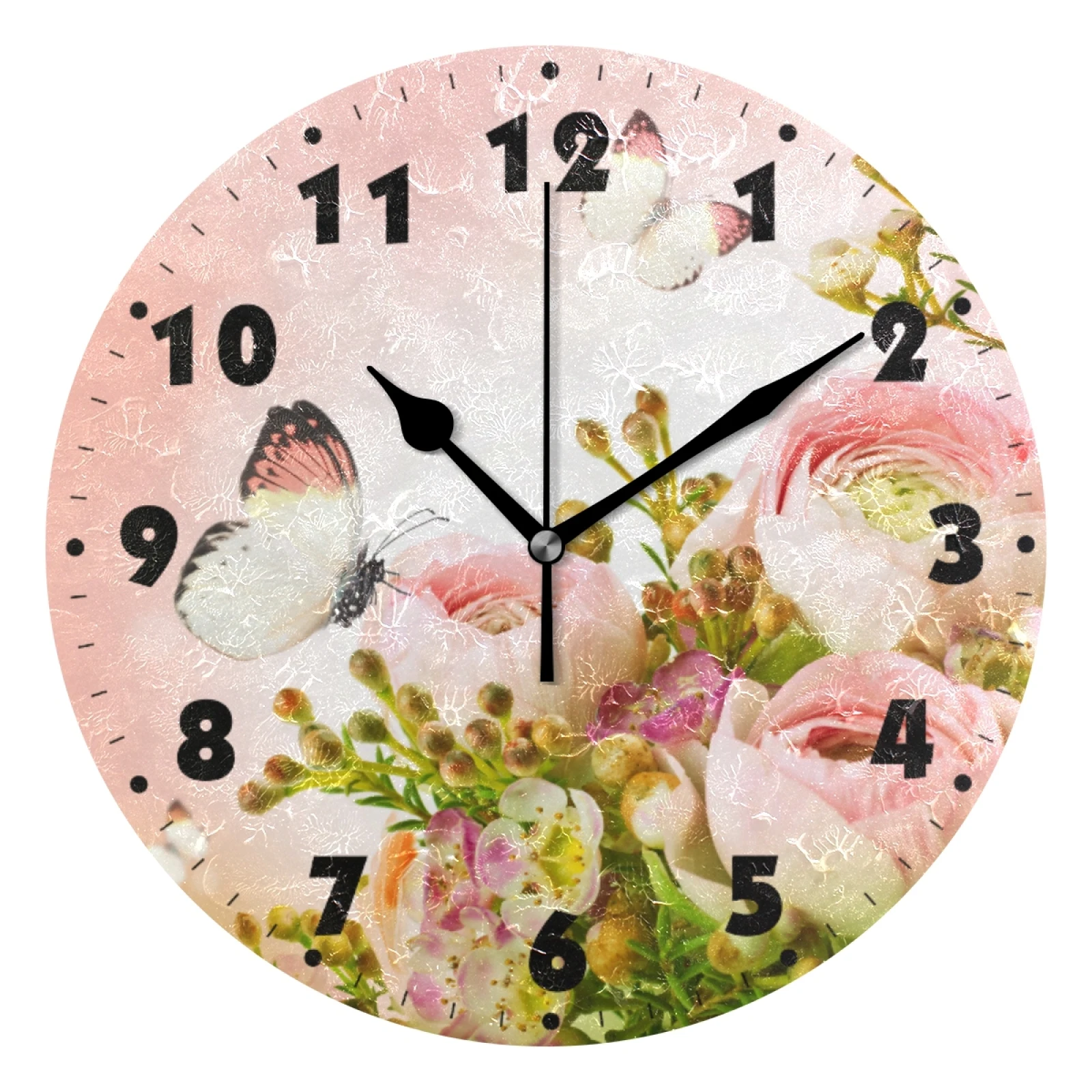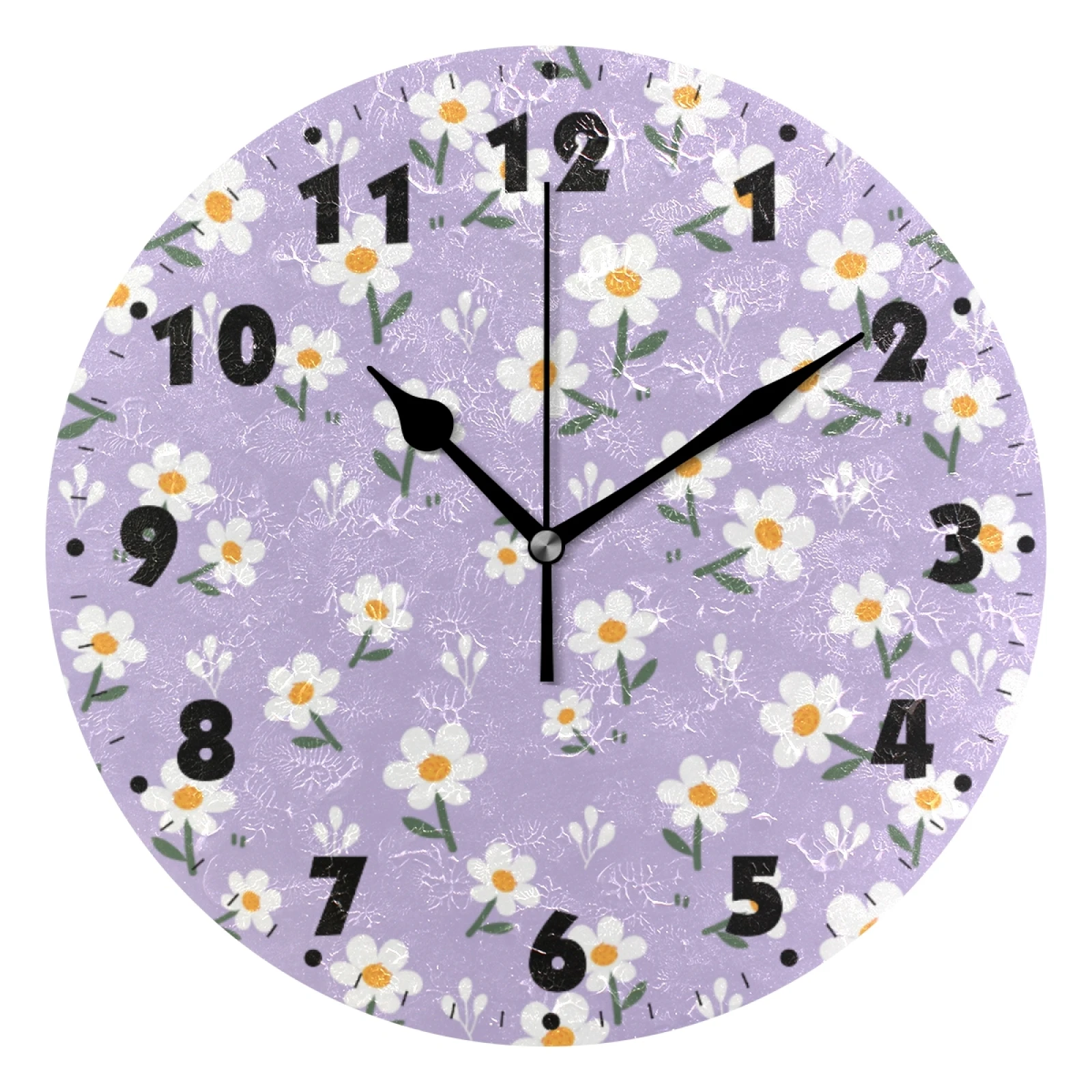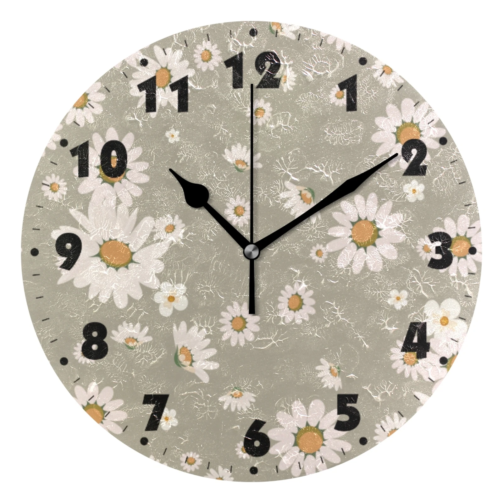 Часы настенные цифровые, круглые, с цветочным принтом, на батарейках, без тикания, для спальни, гостиной