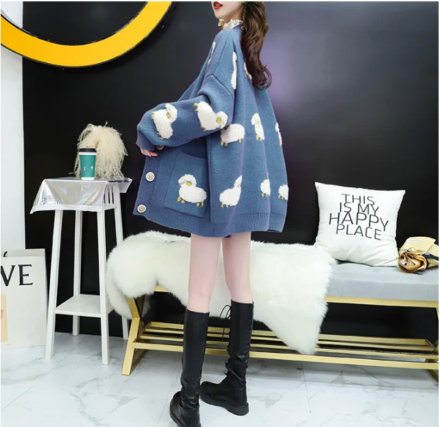 Вязаный кардиган с овечками, корейский новый милый свитер с мультип...