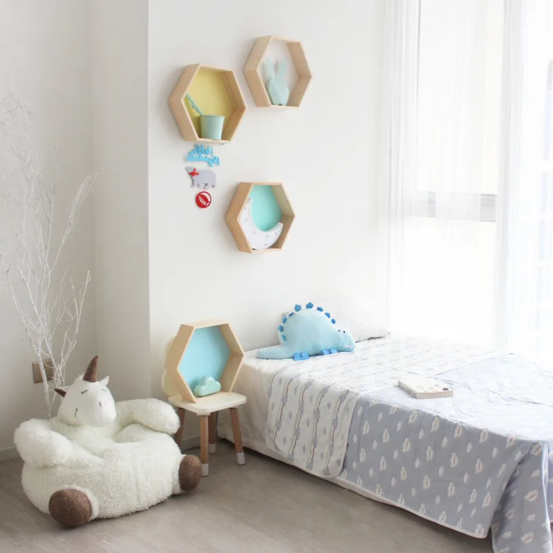 Скандинавская шестиугольная настенная полка, органайзер, деревянные полки, настенная вешалка, украшение для детской комнаты, витрины стеллажи для хранения многоугольный ящик