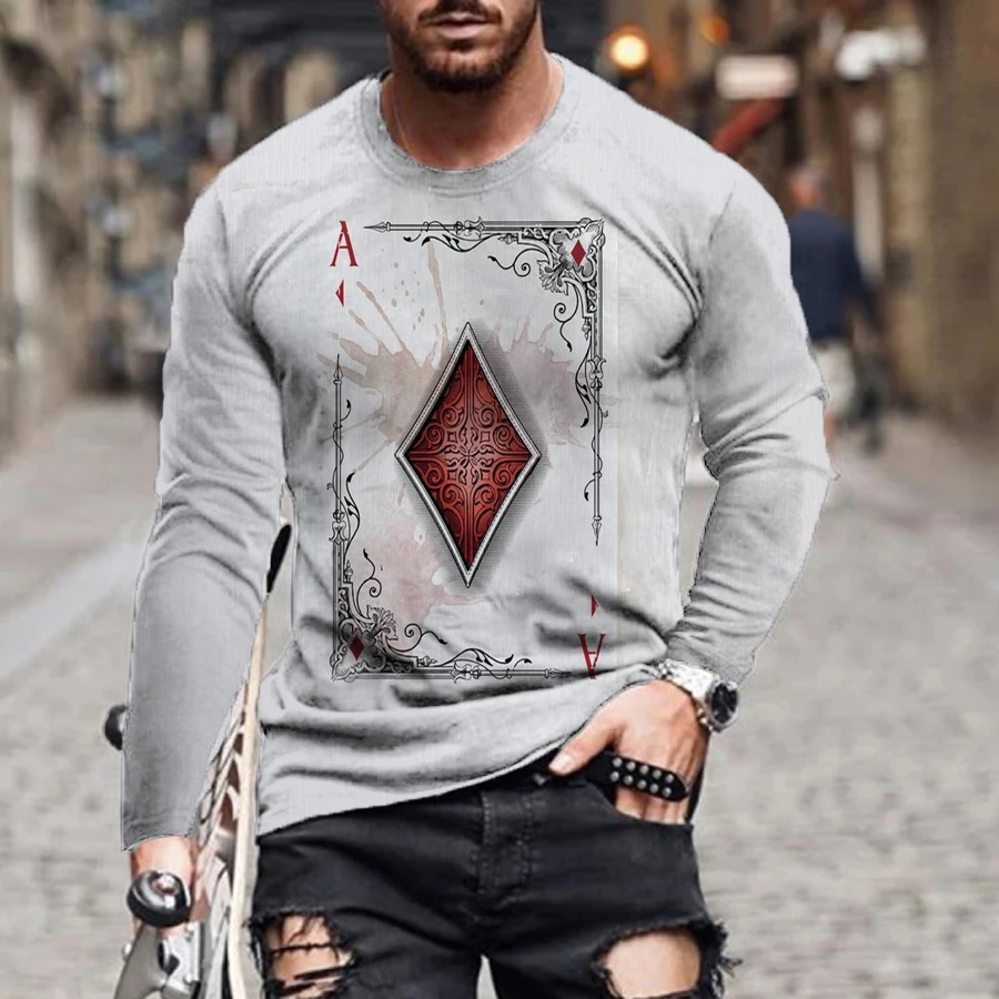 Мужская серия Осень-зима модная футболка с длинным рукавом с принтом игральных карт