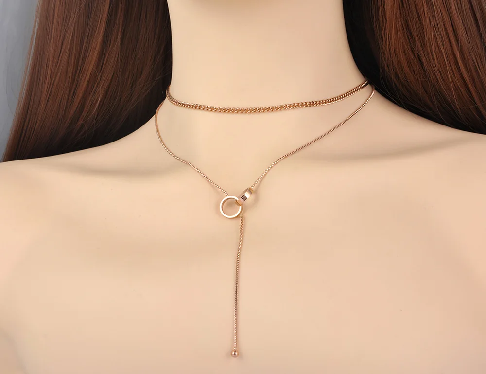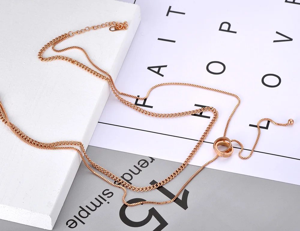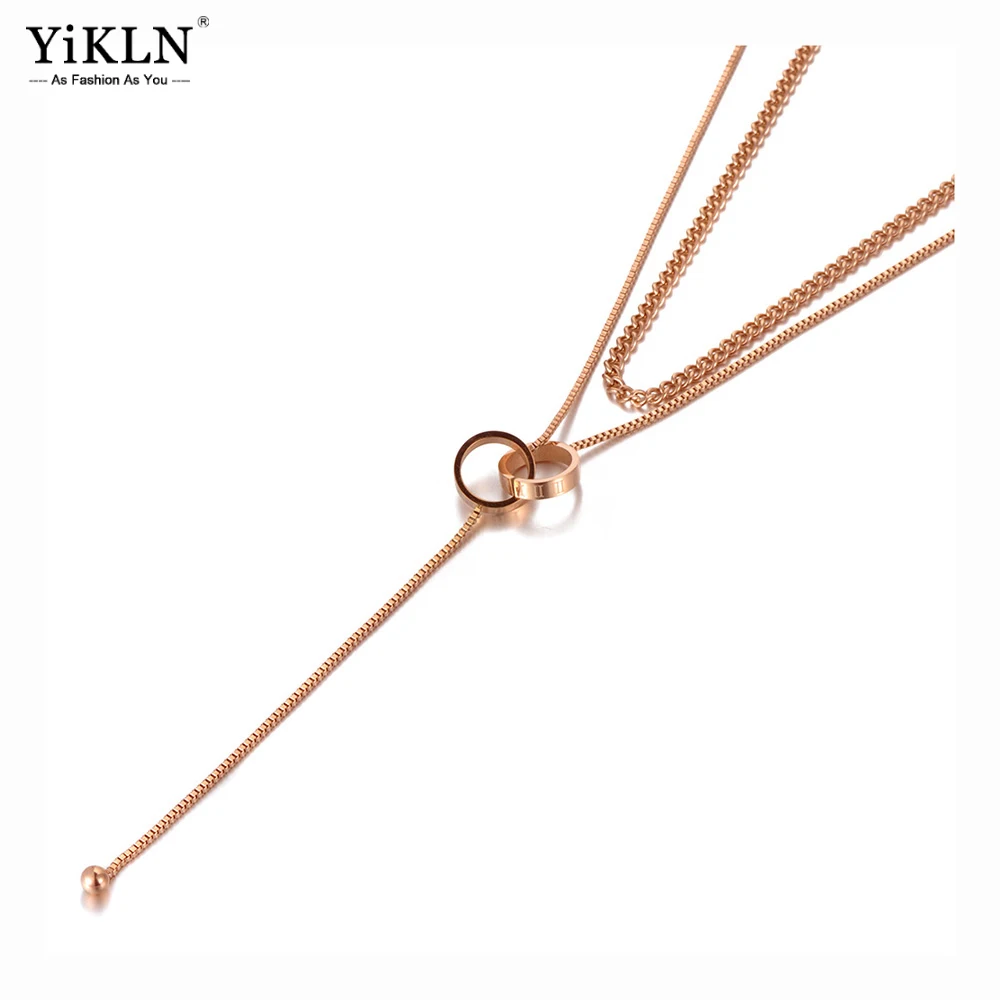 YiKLN гот Нержавеющаясталь двухслойный двойной круг Шарм модное Колье чокер в богемном стиле колье в виде цепочки на Для женщин YN20119