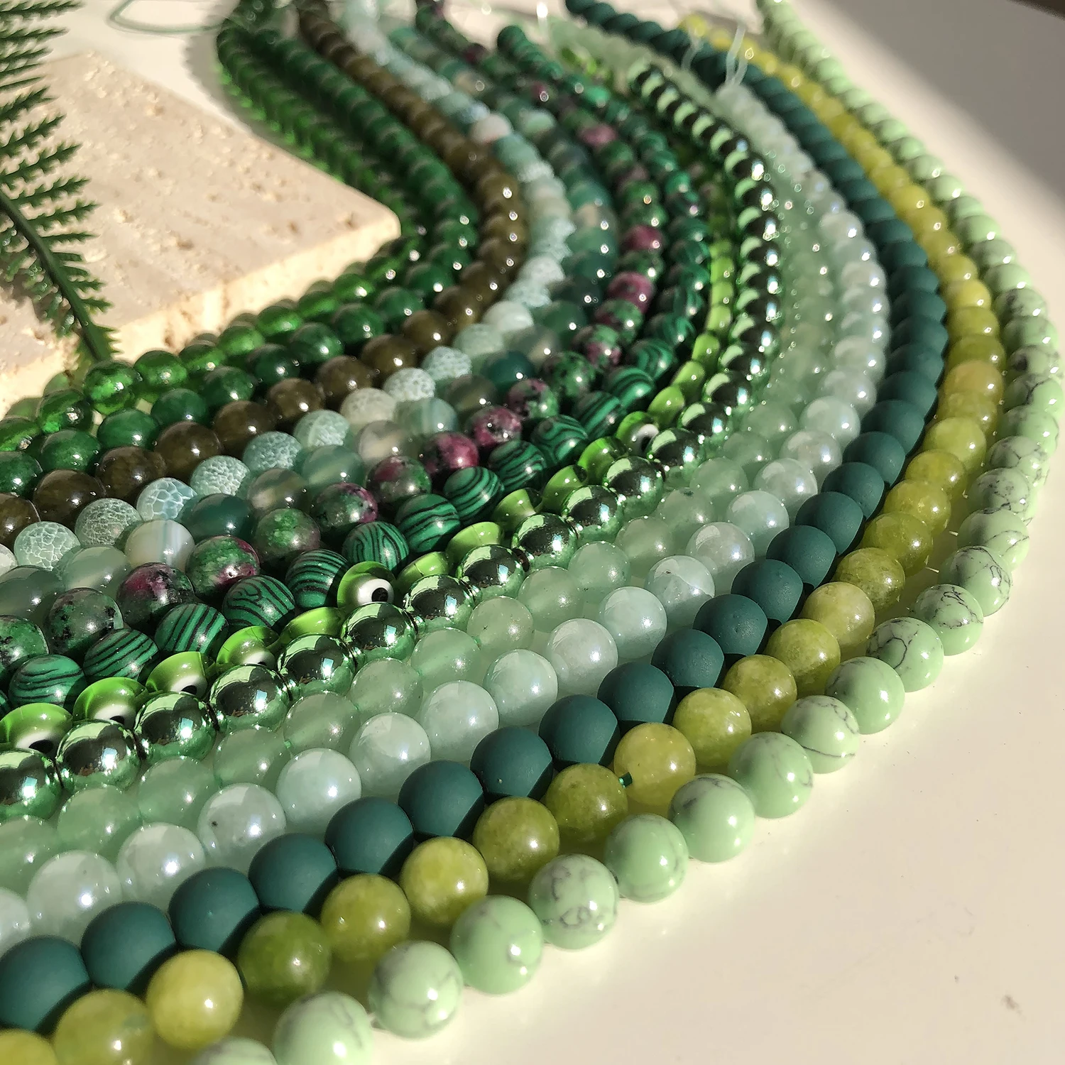 Зеленая серия, гематит, агат, нефрит, кристалл, свободные разделители, минеральные бусины для изготовления ювелирных изделий, рукоделие, браслеты сделай сам 15 дюймов 4681012
