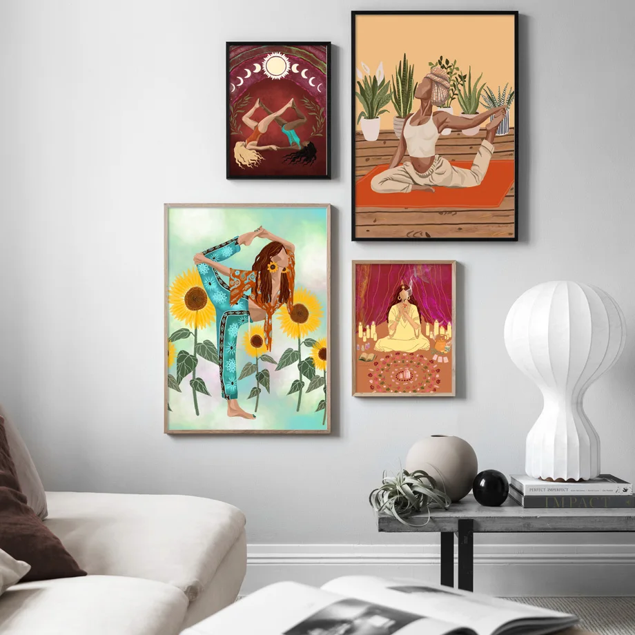 Самоклеящаяся картина, настенная наклейка, абстрактная поза йоги, модные постеры для девочек с цветами в скандинавском стиле, принты, картины для украшения дома icon star icon star icon star icon star icon star