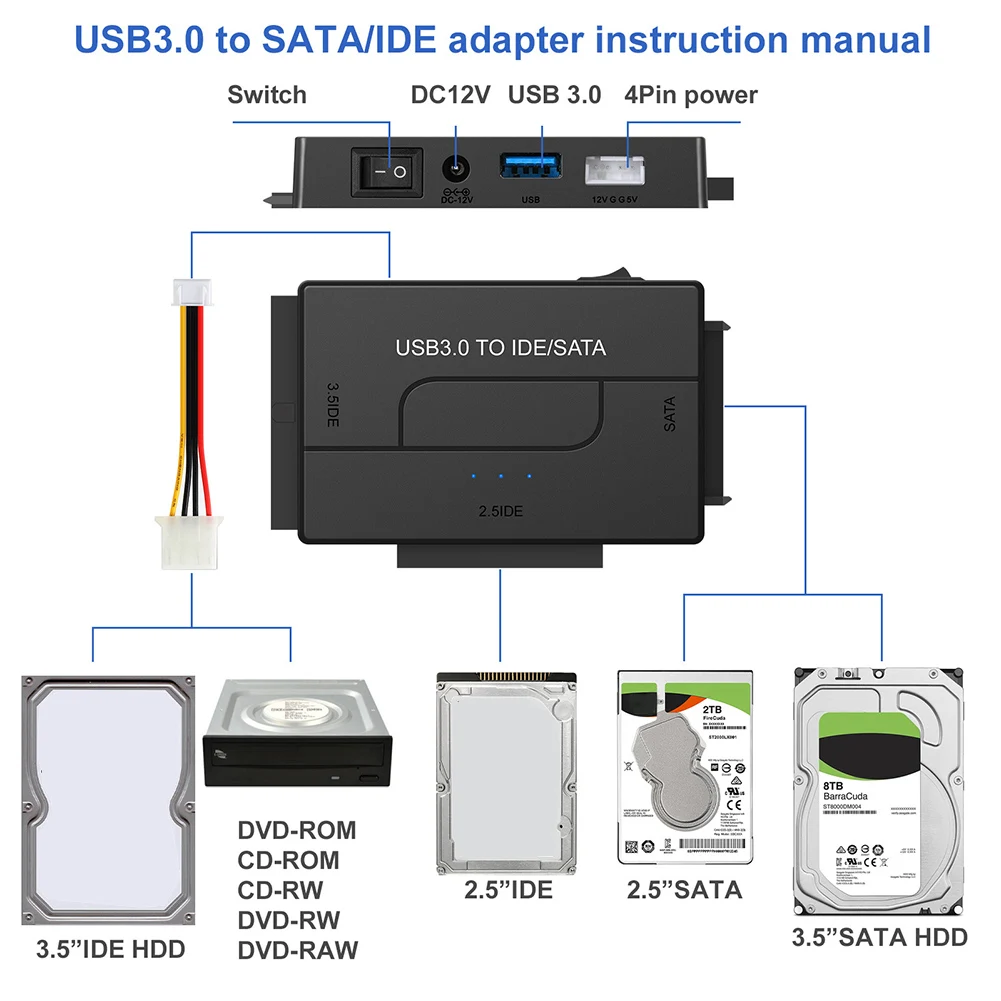 Адаптер USB3.0 на SATA/IDE 2,5 дюйма 3,5 дюйма, внешний жесткий диск, жесткий диск, кабель-конвертер для ПК, ноутбука