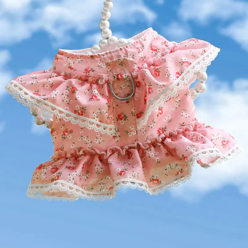 Abrlo/Новинка 2021 г.; Платье на бретельках для маленьких собак с D-ring поводком; Комплект милой роскошной кружевной одежды для щенков с цветочным рисунком; Костюм для животных Чихуахуа-Йорка