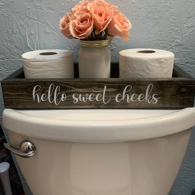 Hello Sweet Cheeks Toilet Paper Tank Tray Caddy Box Sticker Decal