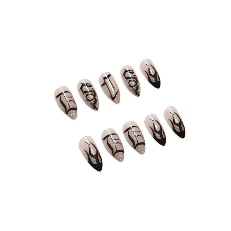 24 шт. глянцевые накладные ногти с заостренным кончиком, темные готические накладные ногти для макияжа на Хэллоуин, накладные ногти с полным покрытием, накладные ногти с клеем